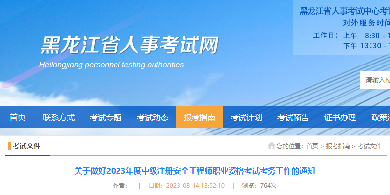 2023年黑龙江中级安全工程师考试时间:10月28日-29日08-23