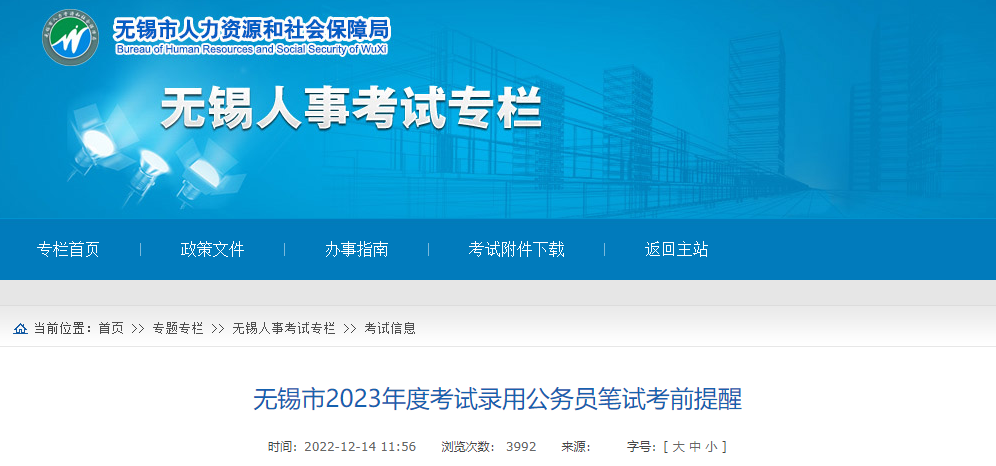 2023年江苏无锡市公务员笔试考前提醒12-16