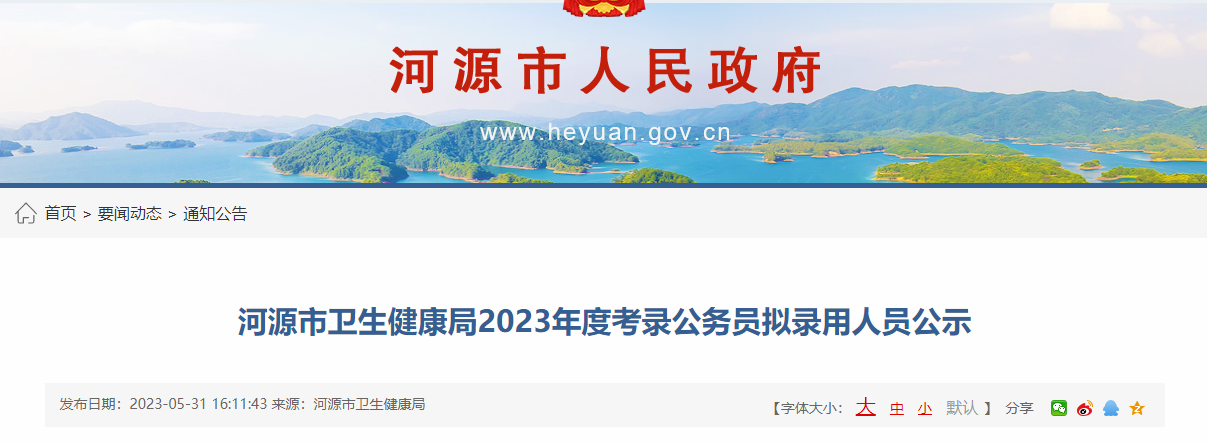 2023年广东河源市卫生健康局公务员拟录用人员公示时间:5月31日-6月6日06-02