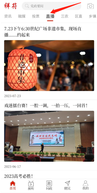 安装完成后,点击“云上祥符”这个图标进入客户端,点击主页,左上角第4个选项“直播”,就可以观看啦!