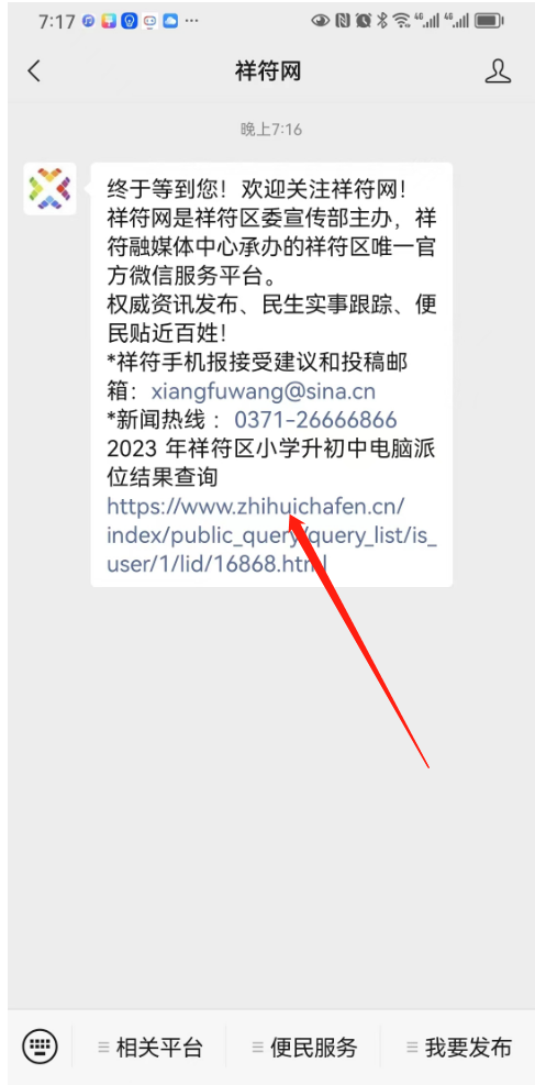 派位结果将在2023年7月31日下午2点通过祥符网公众号进行公布。需学生输入姓名、身份证号即可查询。