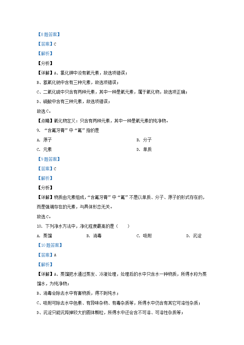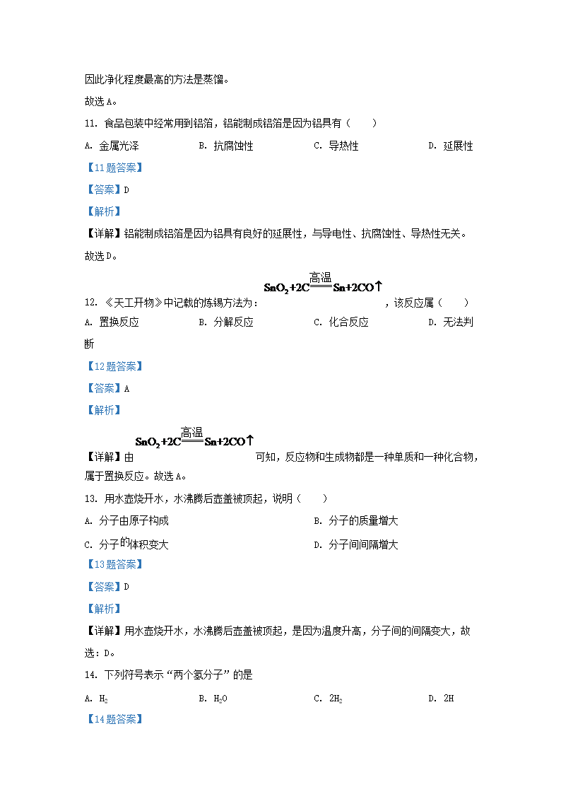 2020-2021学年北京朝阳区初三第一学期化学期末试卷及答案(Word版)07-22