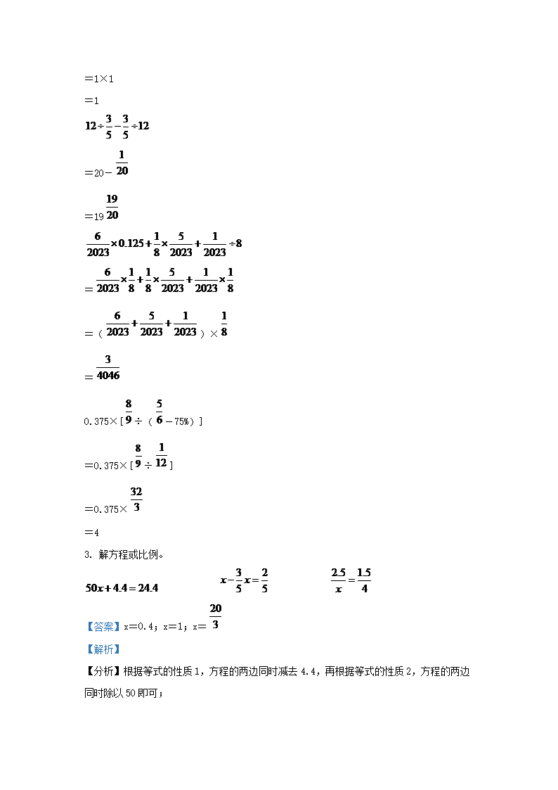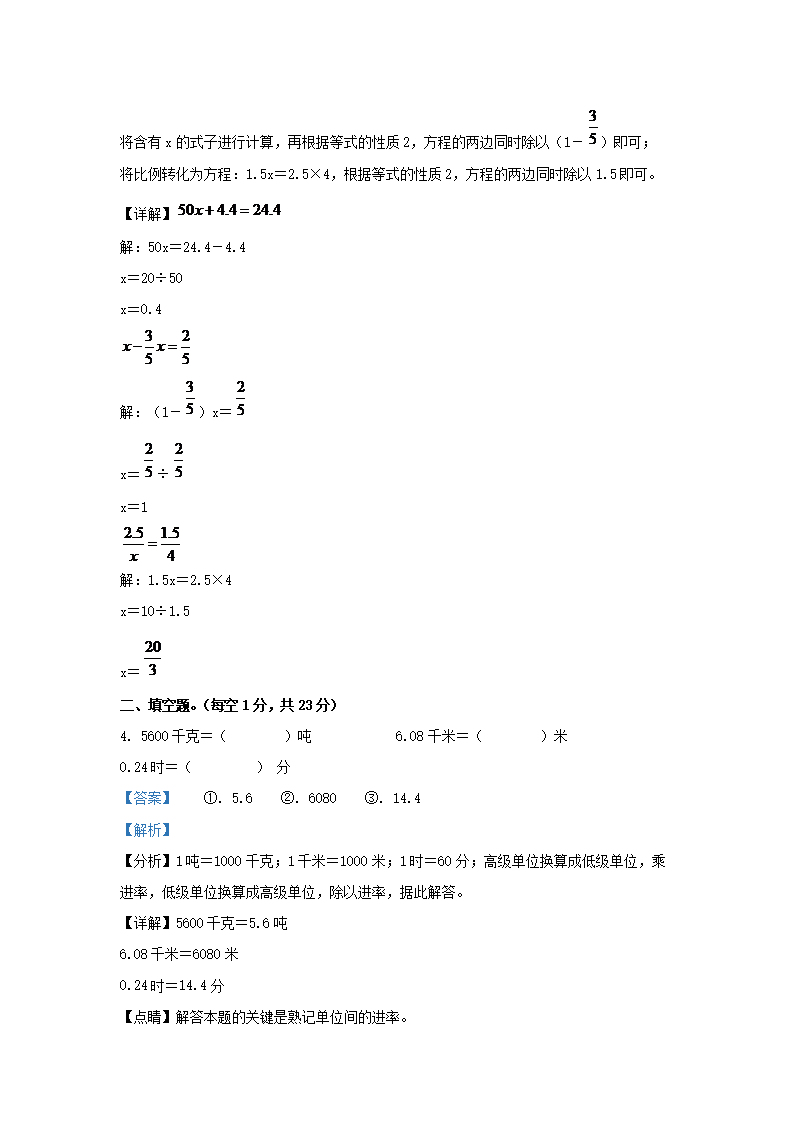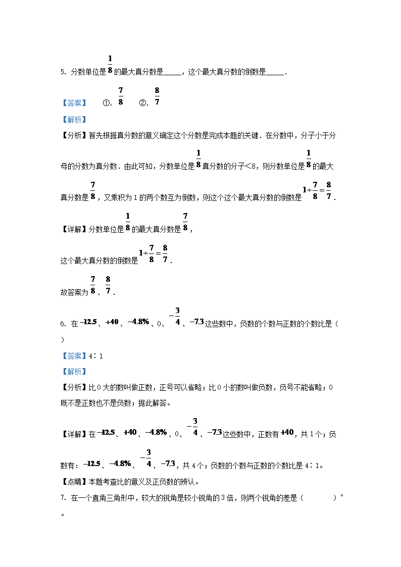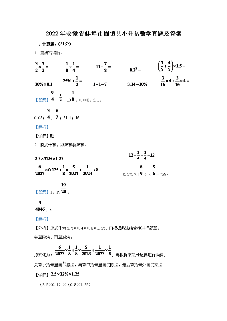 2022年安徽省蚌埠市固镇县小升初数学真题及答案(Word版)09-23
