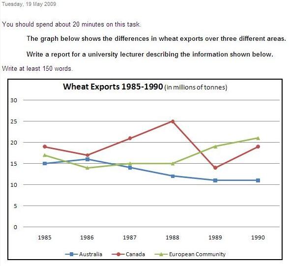 题目:The graph below shows the differences in wheat exports over three different areas. Write a report for a university lecturer describing the information shown below.