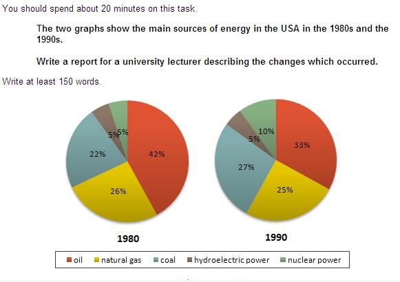 题目:The two graphs show the main sources of energy in the USA in the 1980s and the 1990s. Write a report for a university lecturer describing the changes which occurred.