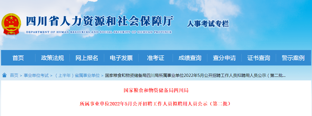 原文标题:国家粮食和物资储备局四川局所属事业单位2022年5月公开招聘工作人员拟聘用人员公示(第二批)