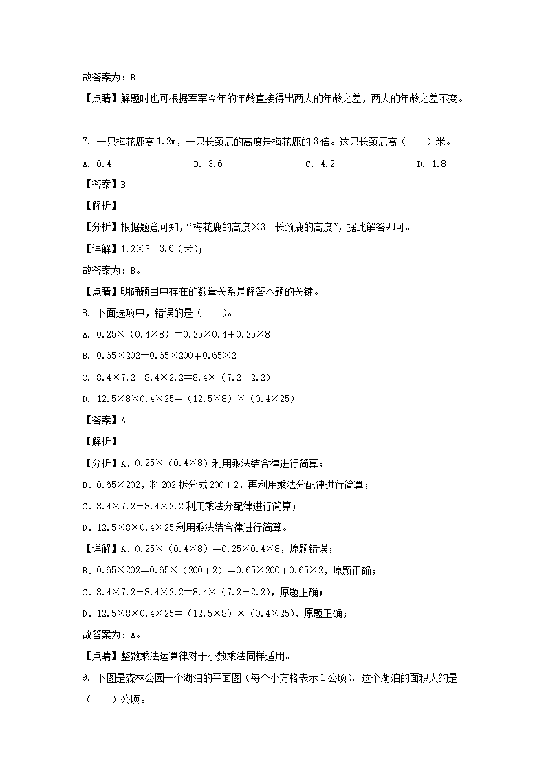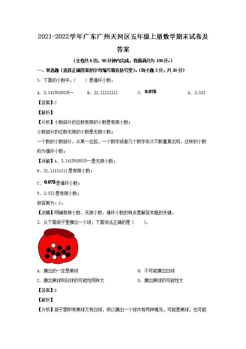 2021-2022学年广东广州天河区五年级上册数学期末试卷及答案(Word版)08-31