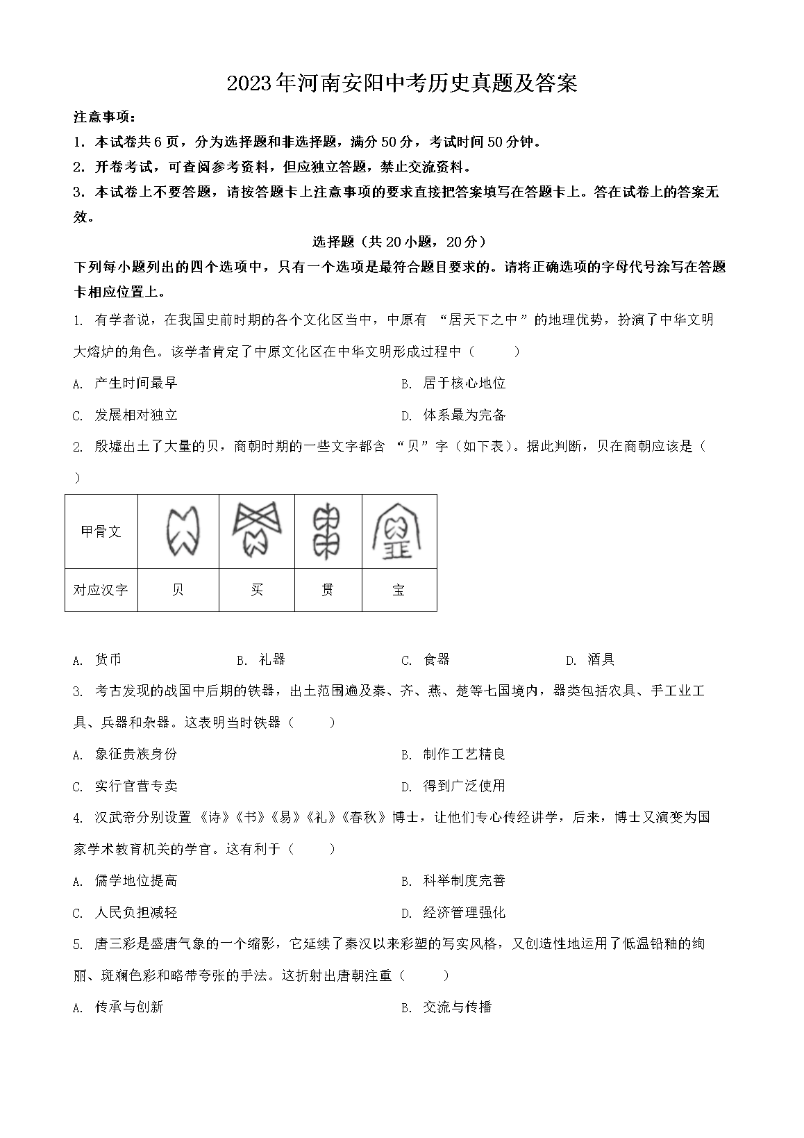 2023年河南安阳中考历史真题及答案(Word版)07-02