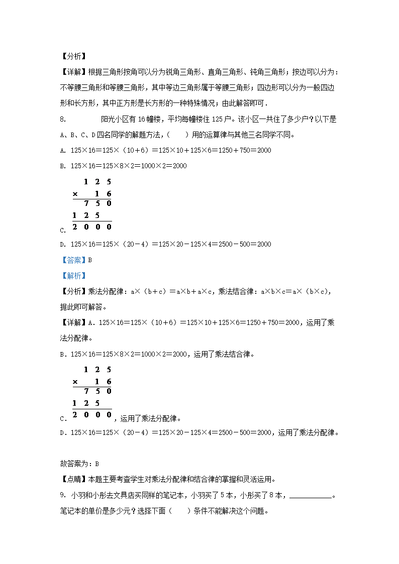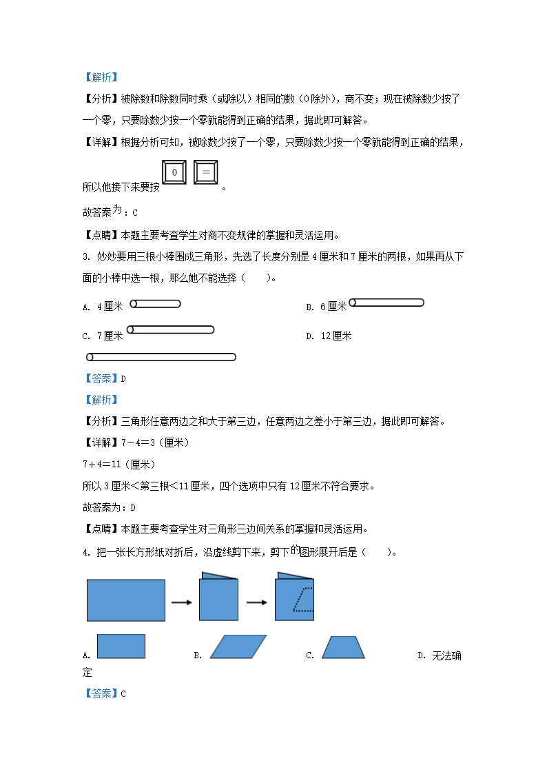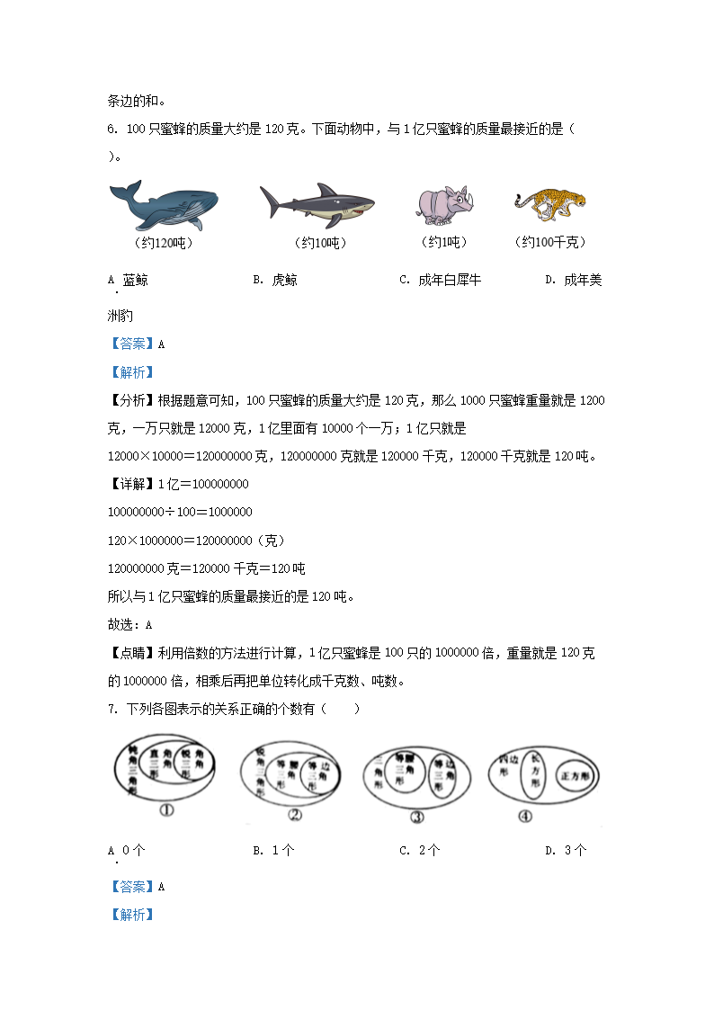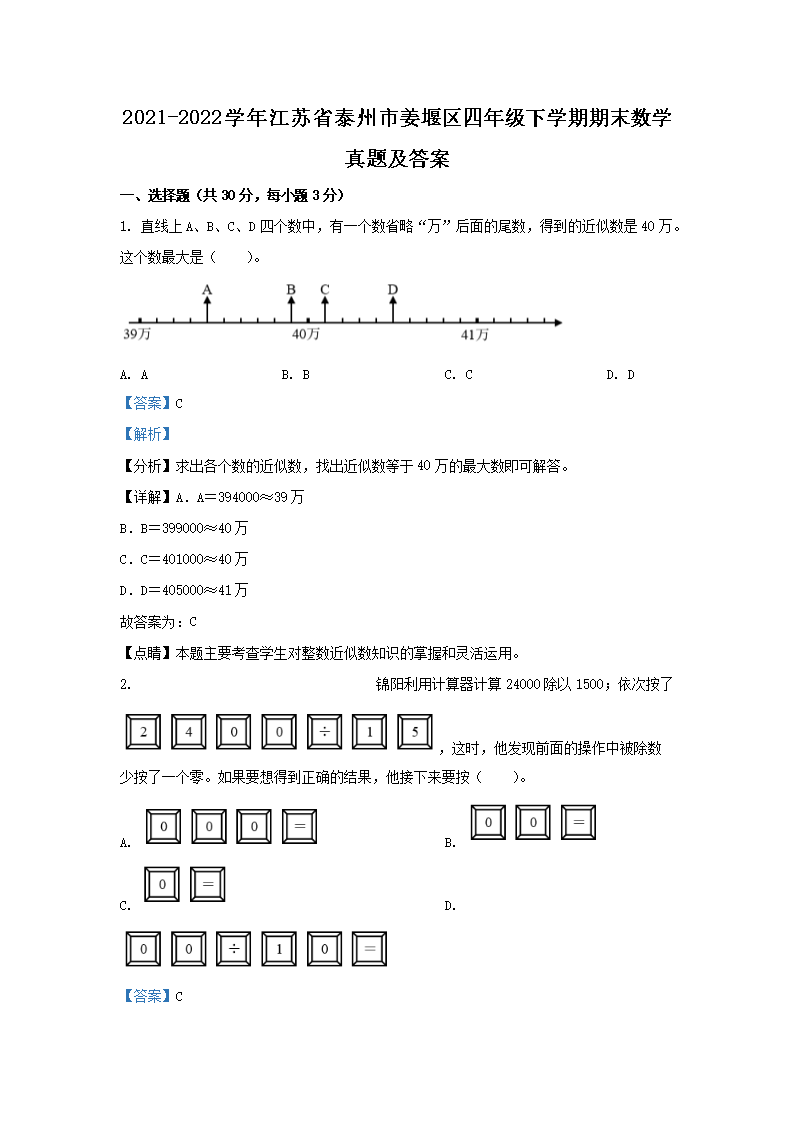 2021-2022学年江苏省泰州市姜堰区四年级下学期期末数学真题及答案(Word版)07-19
