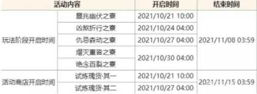 ● 从活动开始的第一天起,每三天会开启新的试炼关卡,一共会开启五个试炼关卡。