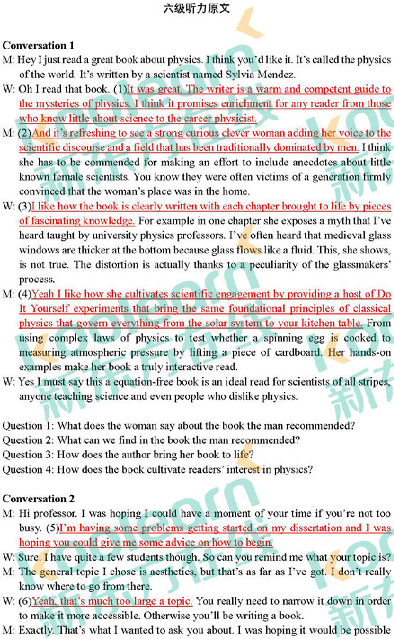 【#四六级考试# 导语】2018年12月英语六级考试已结束,©文档大全网四六级频道在考后特别整理了2018年12月英语六级听力真题答案(新东方在线版),仅供大家参考,祝大家顺利通过六级考试!