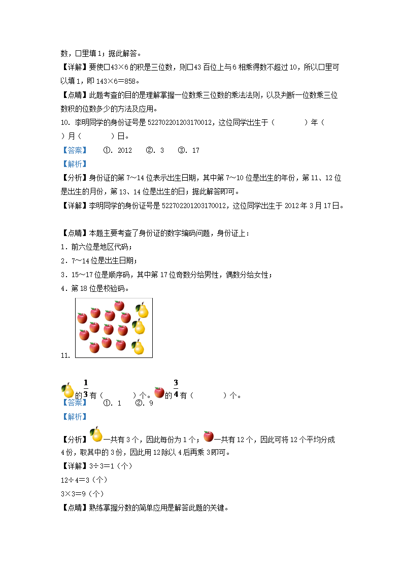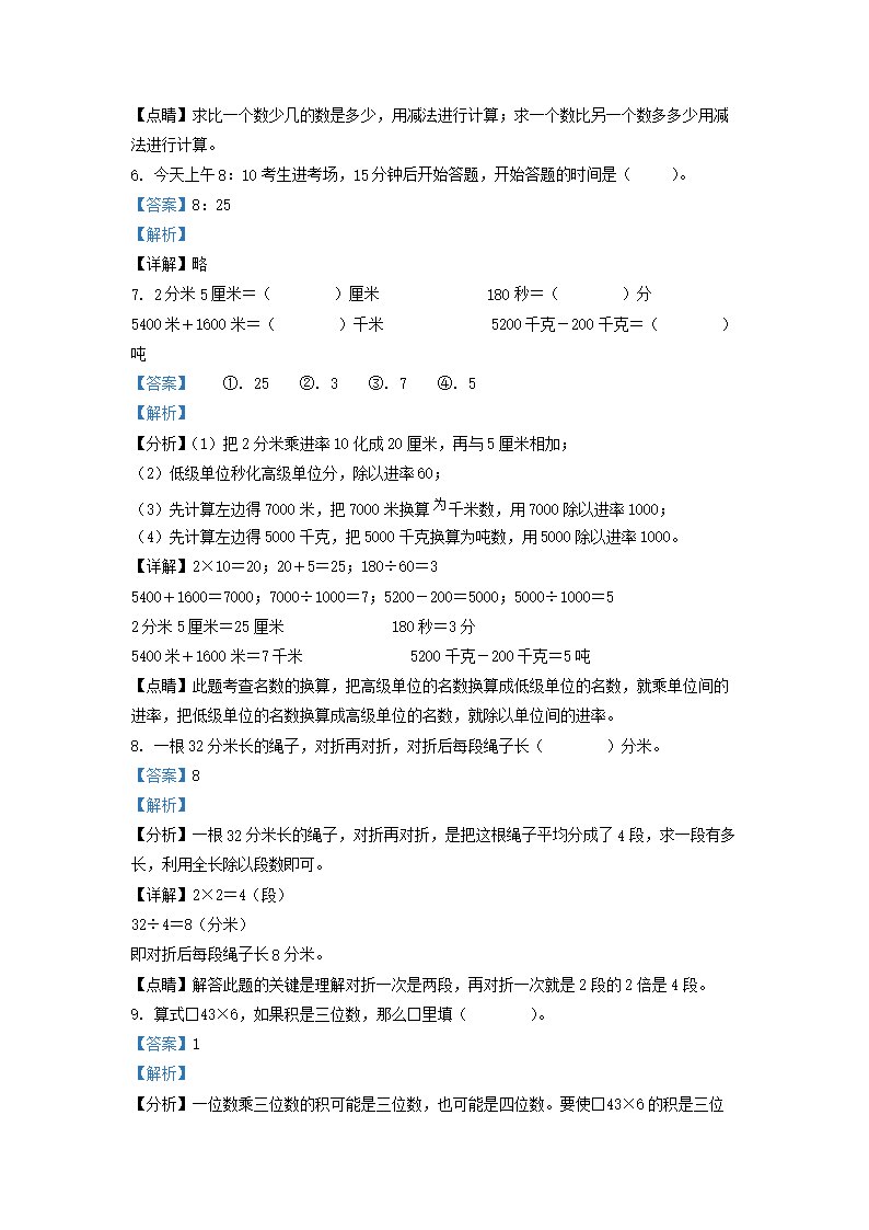 2021-2022学年河北省石家庄市鹿泉区人教版三年级上册期末考试数学试卷及答案(Word版)09-28