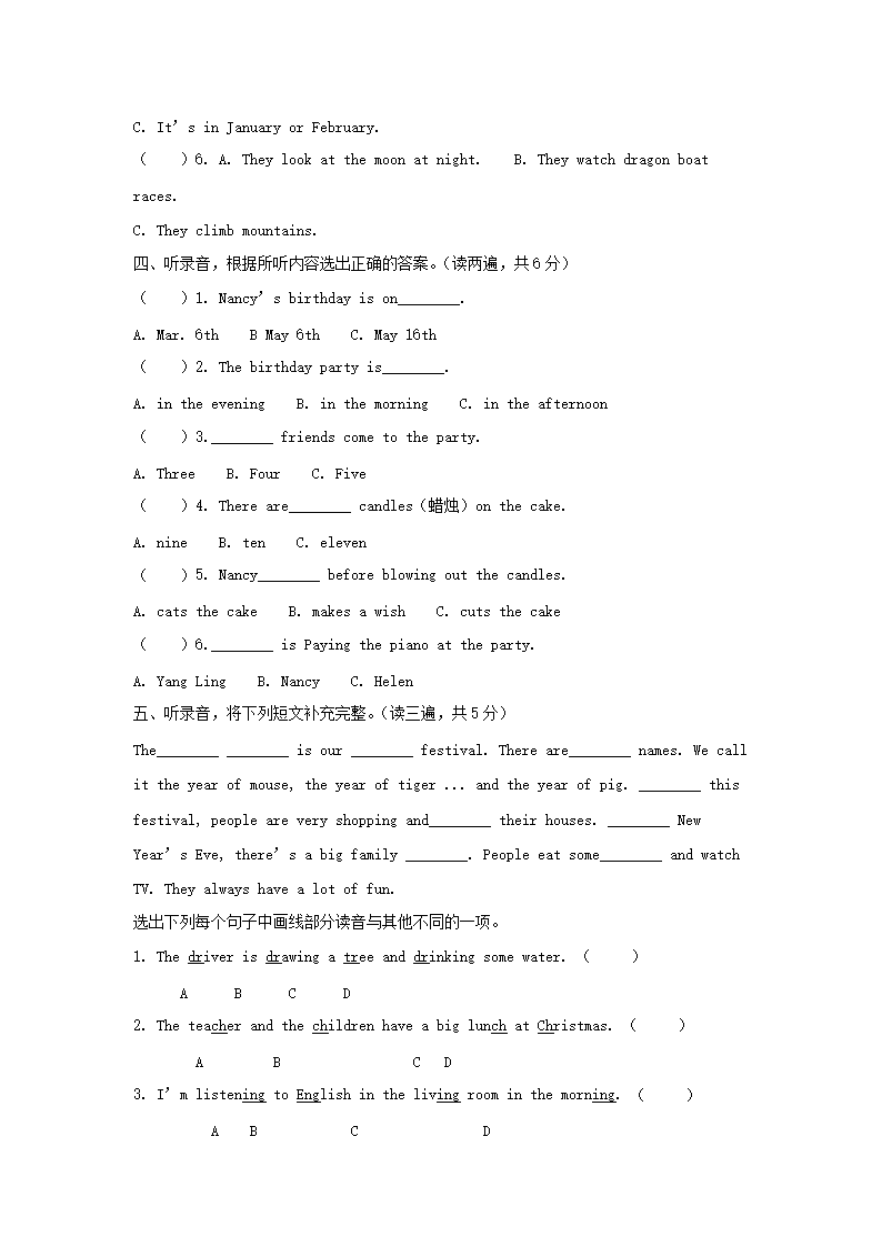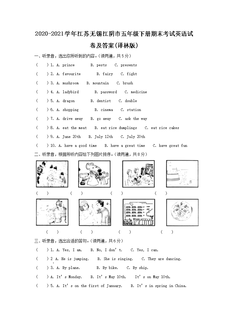 2020-2021学年江苏无锡江阴市五年级下册期末考试英语试卷及答案(译林版)(Word版)09-22