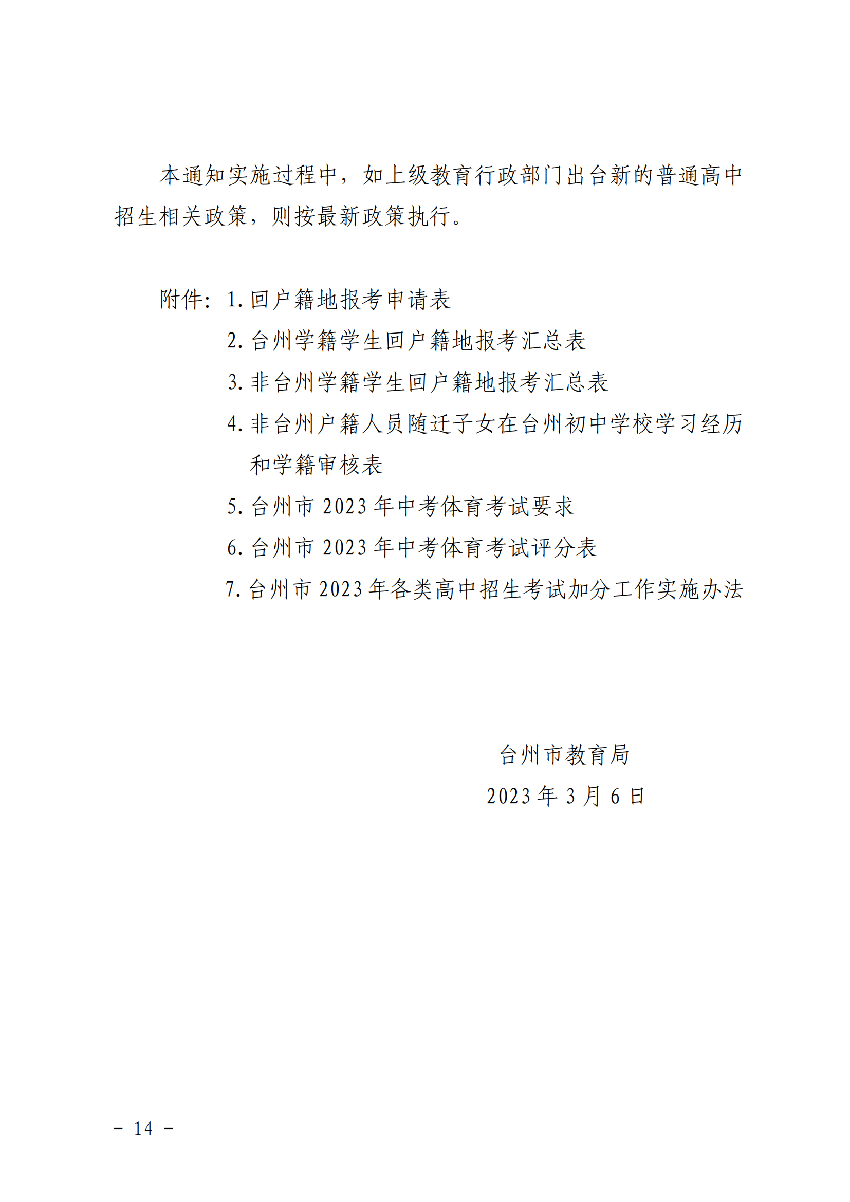 浙江台州2023年初中毕业生学业考试与高中招生工作的通知05-12