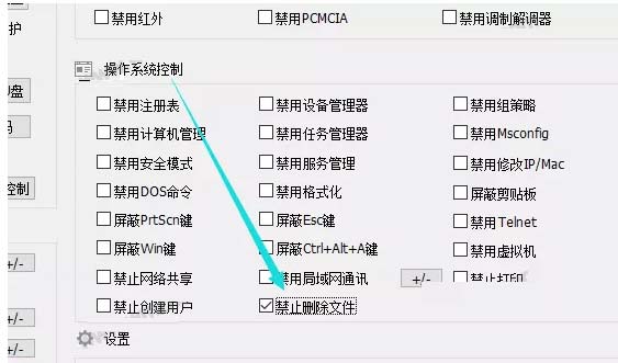登录软件,进入主界面,在右侧点击【操作系统控制】大类,勾选【禁止删除文件】,