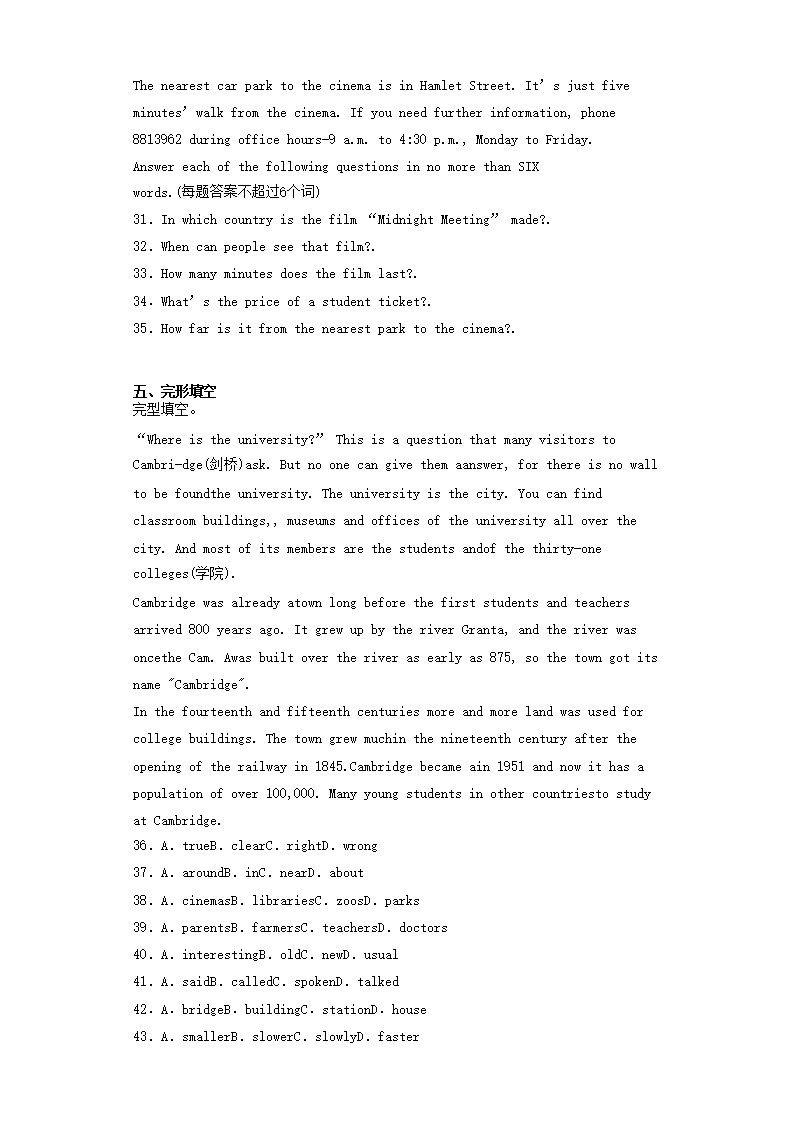 【文档预览】 文档大全网整理发布2021年北京市西城区小升初英语考试真题及答案(Word版),前五页预览如下: