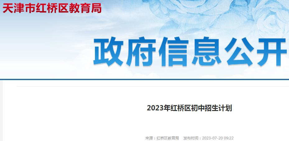 2023年天津市红桥区初中招生计划公布07-22