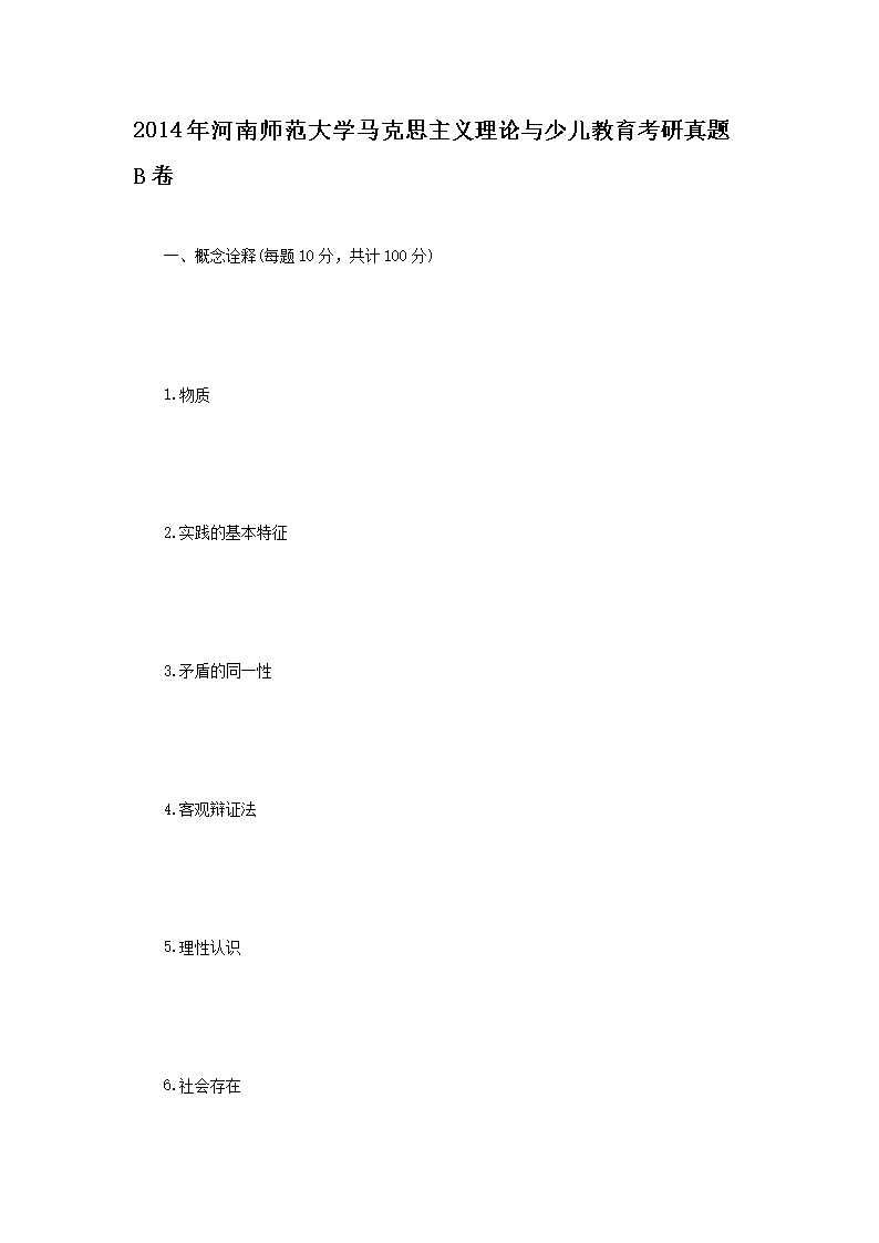 2014年河南师范大学马克思主义理论与少儿教育考研真题B卷(Word版)06-08