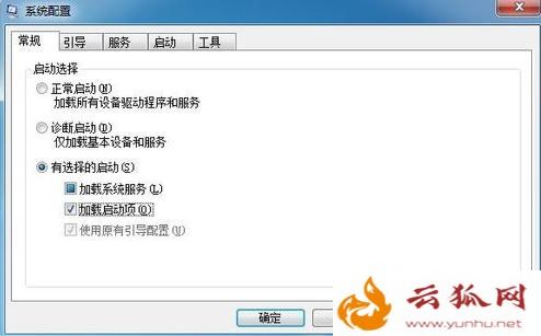 2、在“常规”选项卡下,选择“有选择的启动”,并取消勾选“加载启动项”复选框;