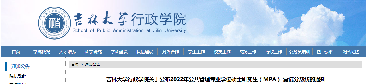 吉林大学行政学院公共管理专业学位2022年考研复试分数线(已公布)08-28