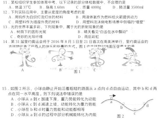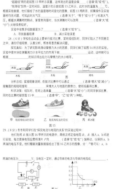 2016湖北咸宁中考物理试题(已公布)04-13