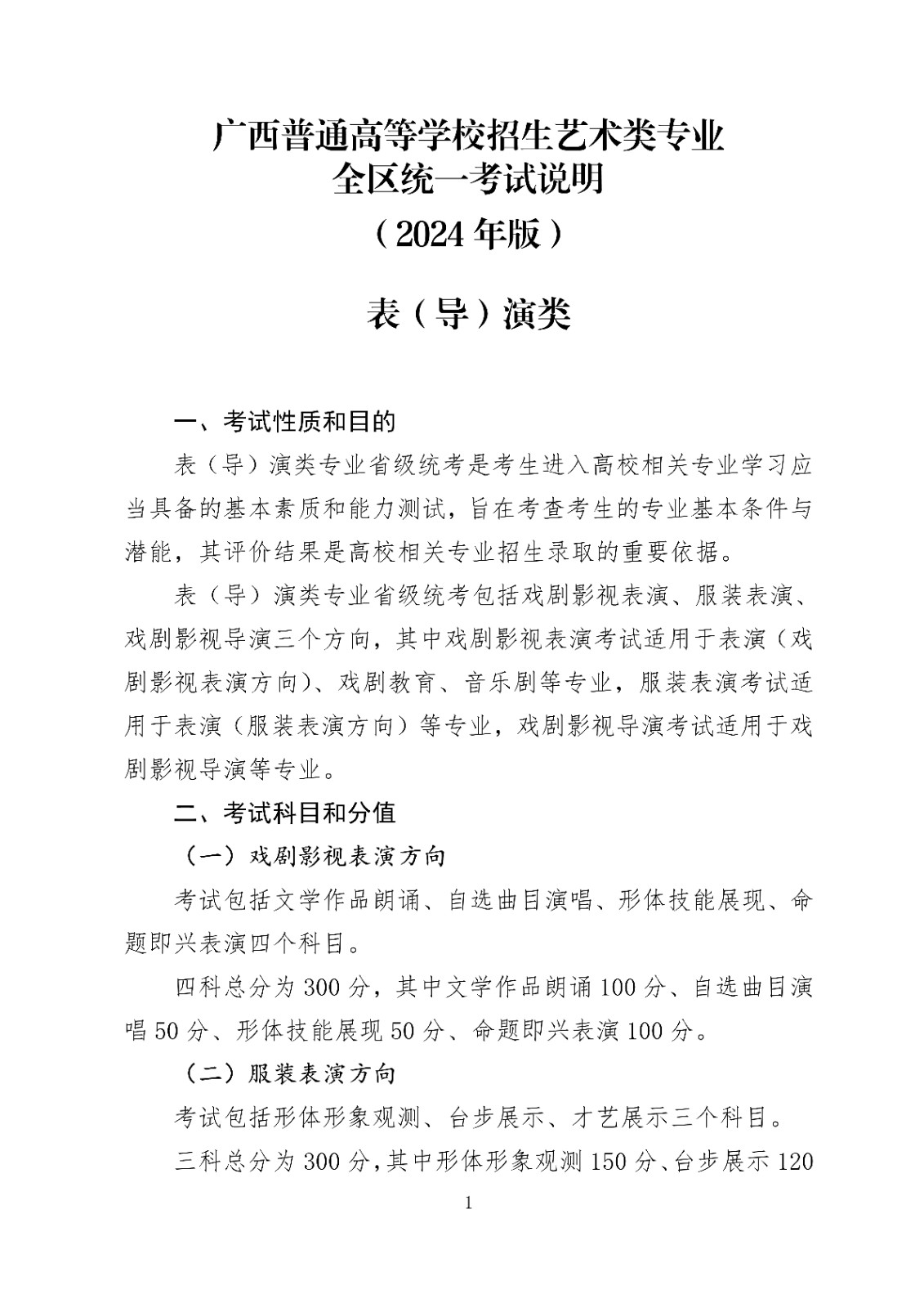 原文标题:广西普通高校招生艺术类专业全区统一考试说明(2024年版)表(导)演类