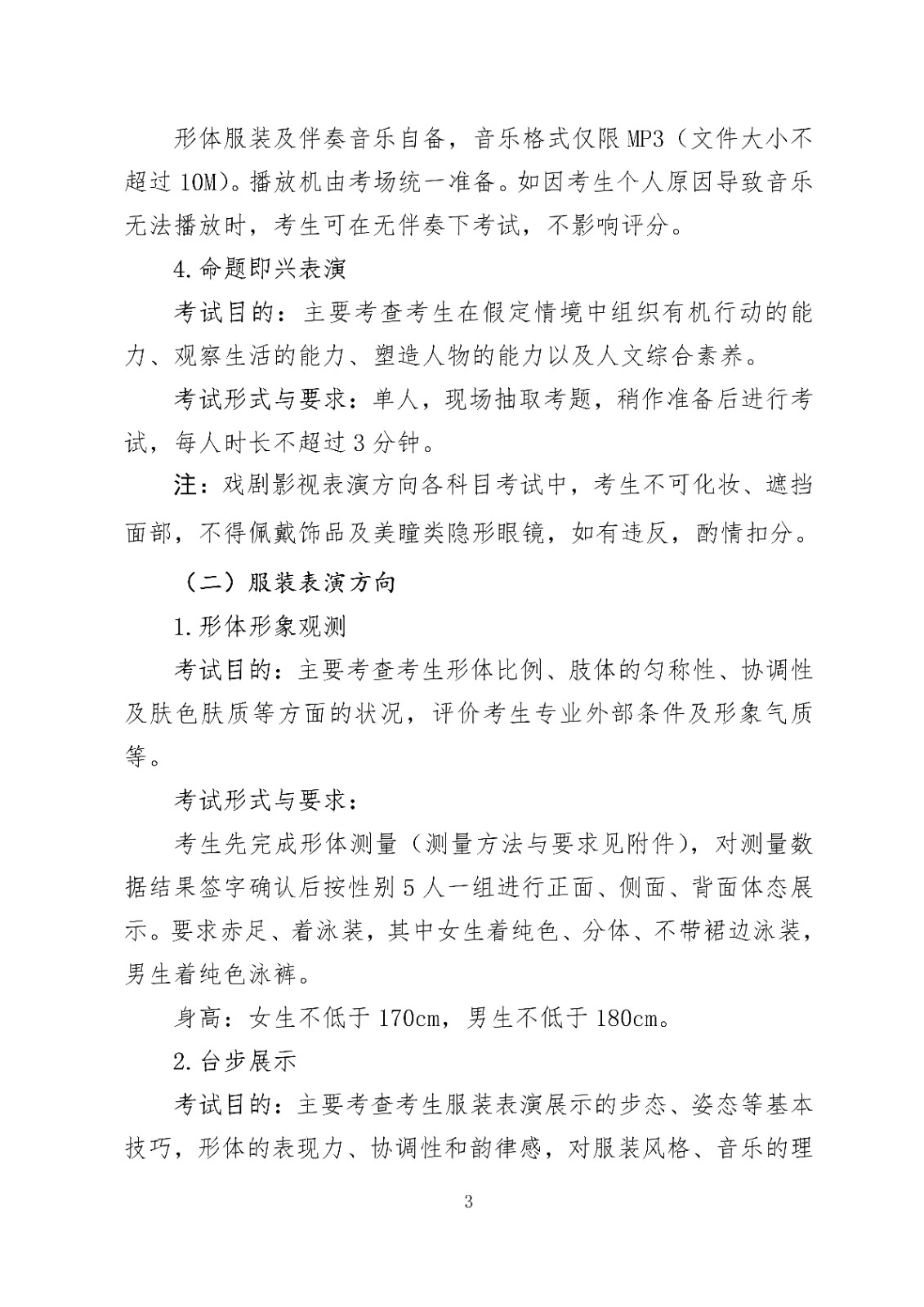 形体服装及伴奏音乐自备,音乐格式仅限MP3(文件大小不超过10M)。播放机由考场统一准备。如因考生个人原因导致音乐无法播放时,考生可在无伴奏下考试,不影响评分。