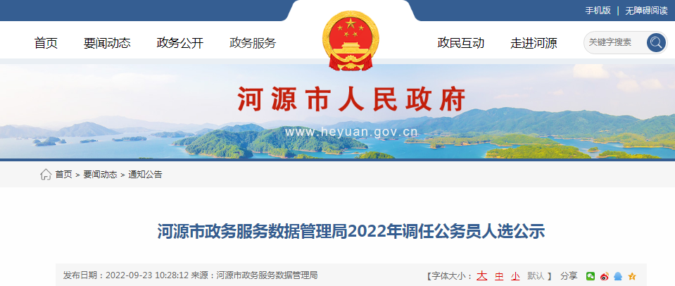 原文标题:河源市政务服务数据管理局2022年调任公务员人选公示