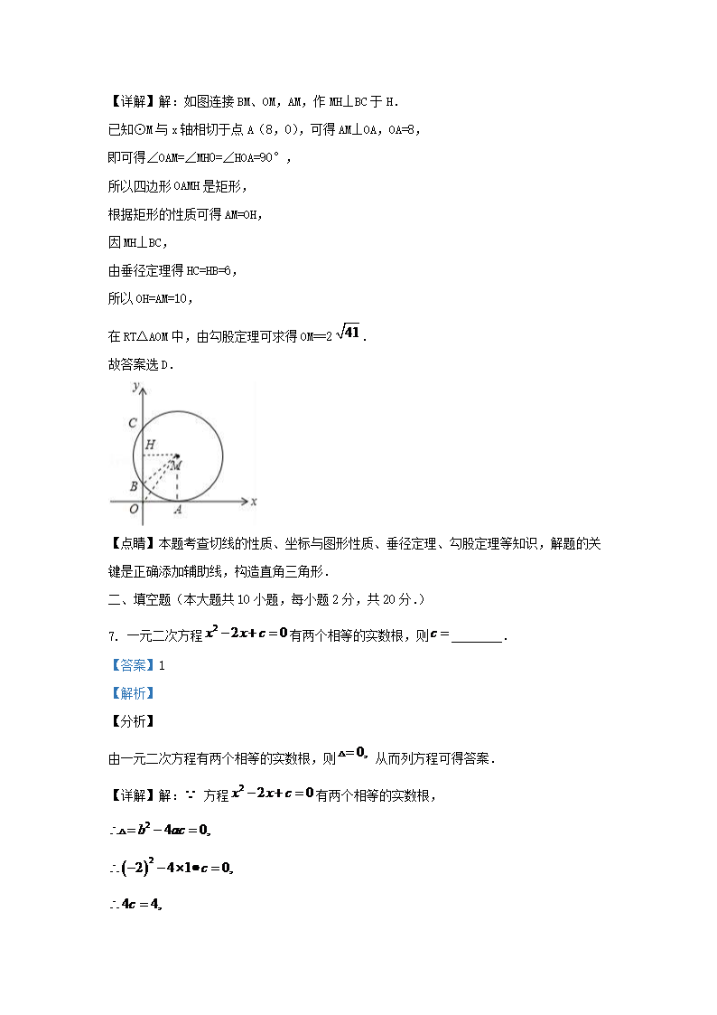 2020-2021学年江苏省南京市鼓楼区九年级上学期数学期中试题及答案(Word版)09-27