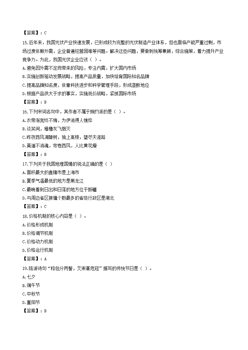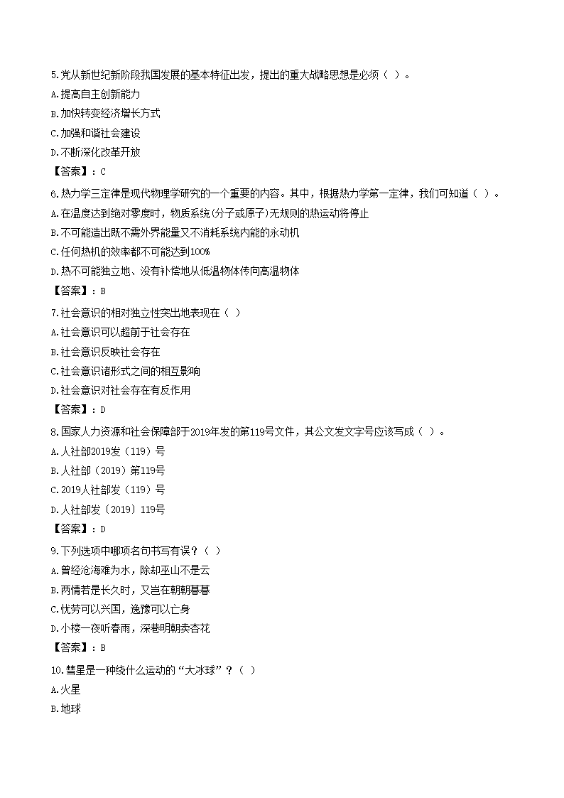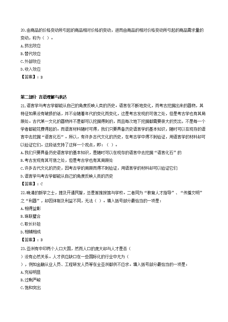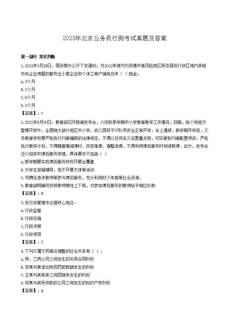 2023年北京公务员行测考试真题及答案(Word版)08-30