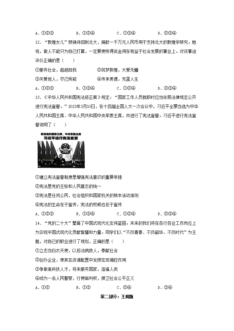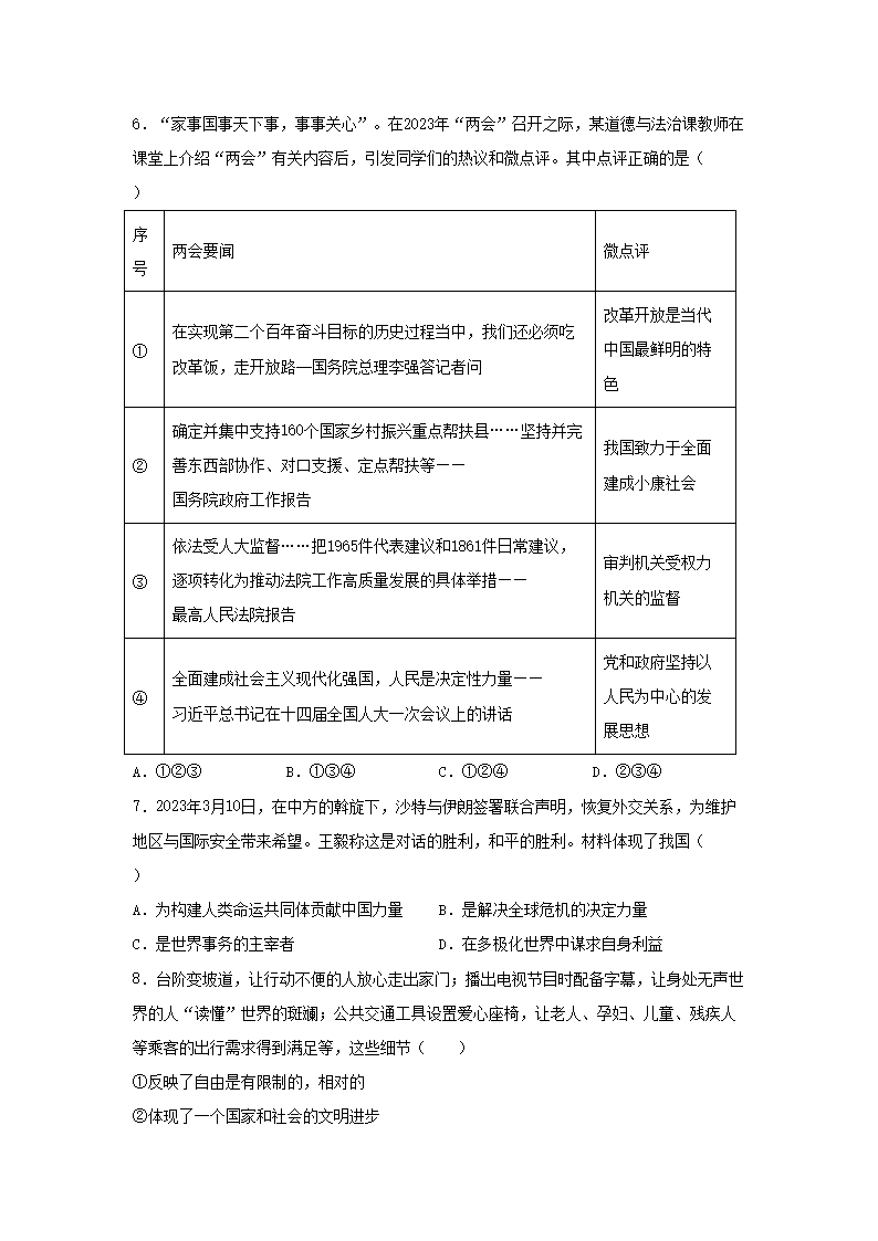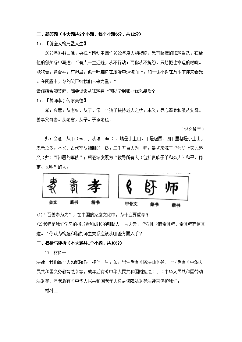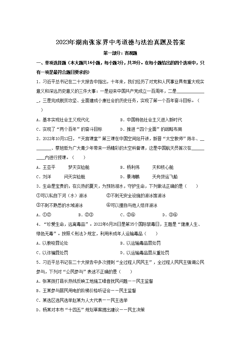 2023年湖南张家界中考道德与法治真题及答案(Word版)07-25