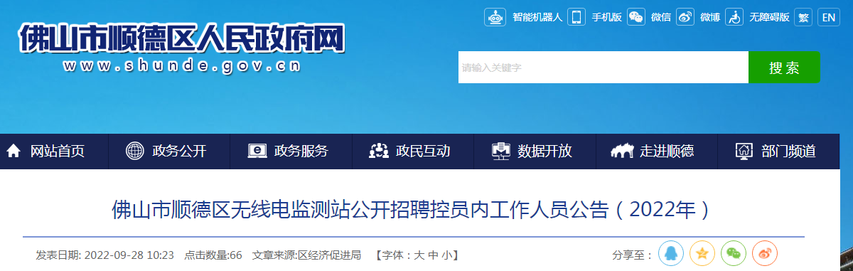 2022年广东省佛山市顺德区无线电监测站公开控员内工作人员招聘公告09-30