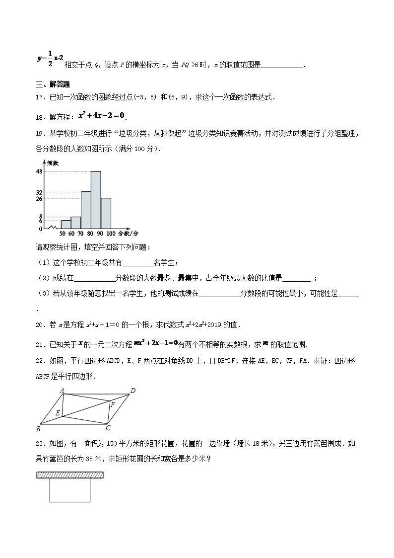 2020-2021学年北京市大兴区八年级下学期期末数学试题及答案(Word版)06-14