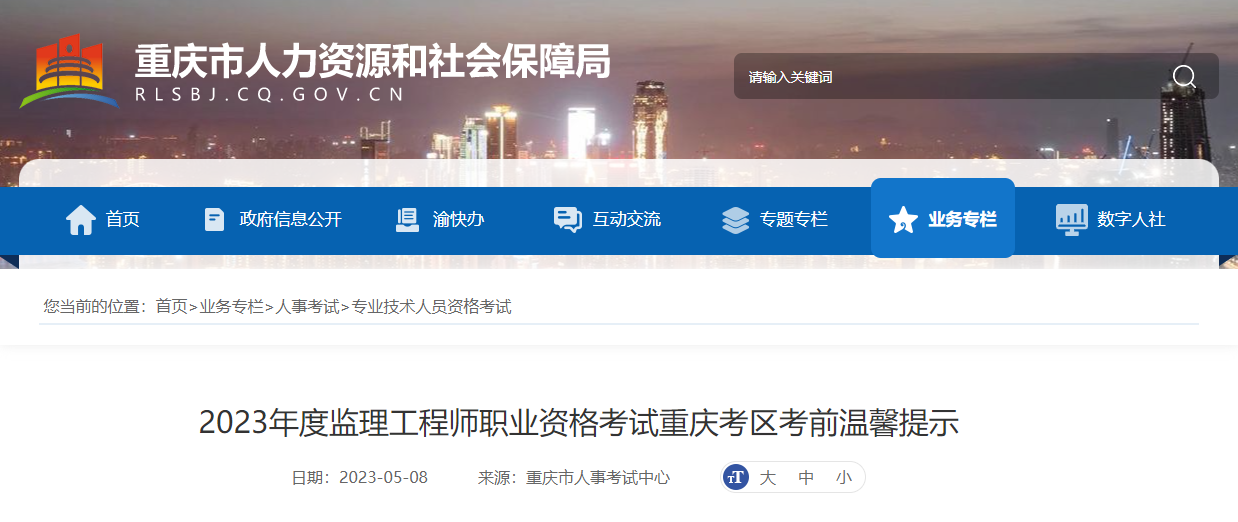 原文标题:2023年度监理工程师职业资格考试重庆考区考前温馨提示