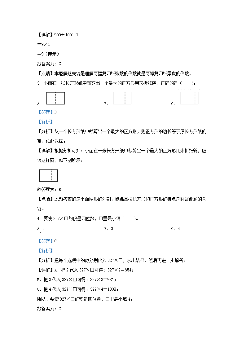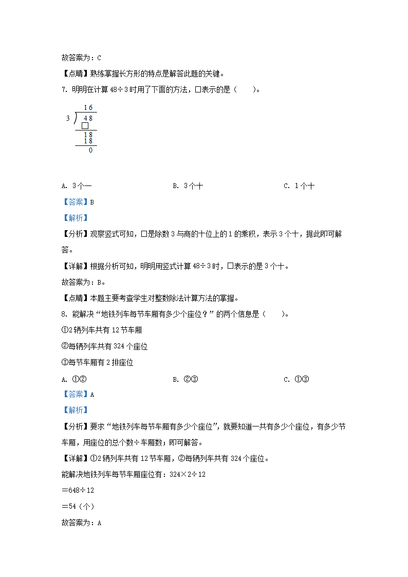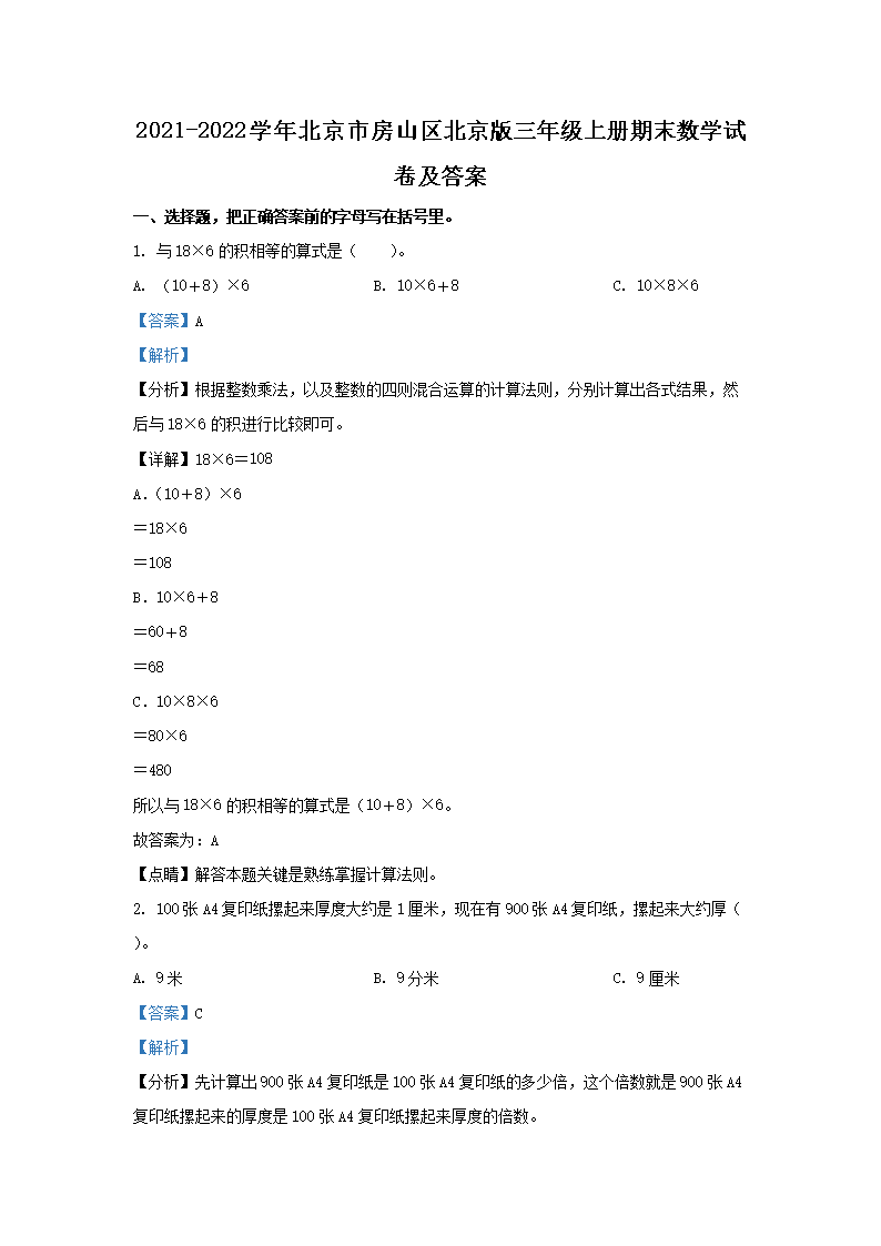 2021-2022学年北京市房山区北京版三年级上册期末数学试卷及答案(Word版)06-27