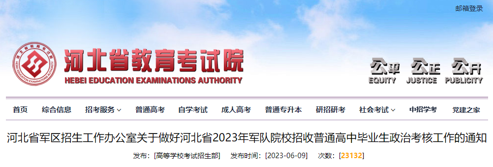 河北省2023年军队院校招收普通高中毕业生政治考核工作通知06-11