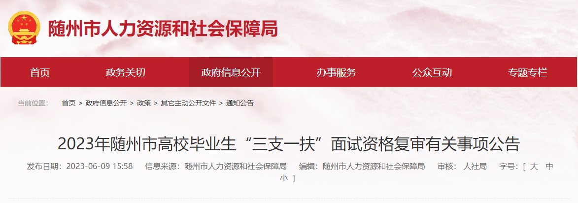 2023年湖北随州市高校毕业生“三支一扶”面试资格复审有关事项公告06-15