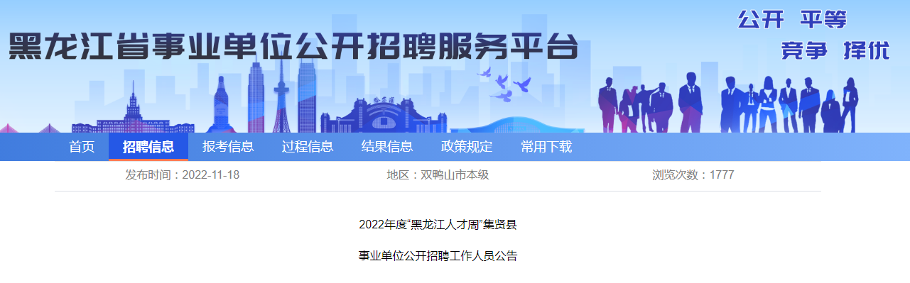 原文标题:2022年度“黑龙江人才周”集贤县事业单位公开招聘工作人员公告