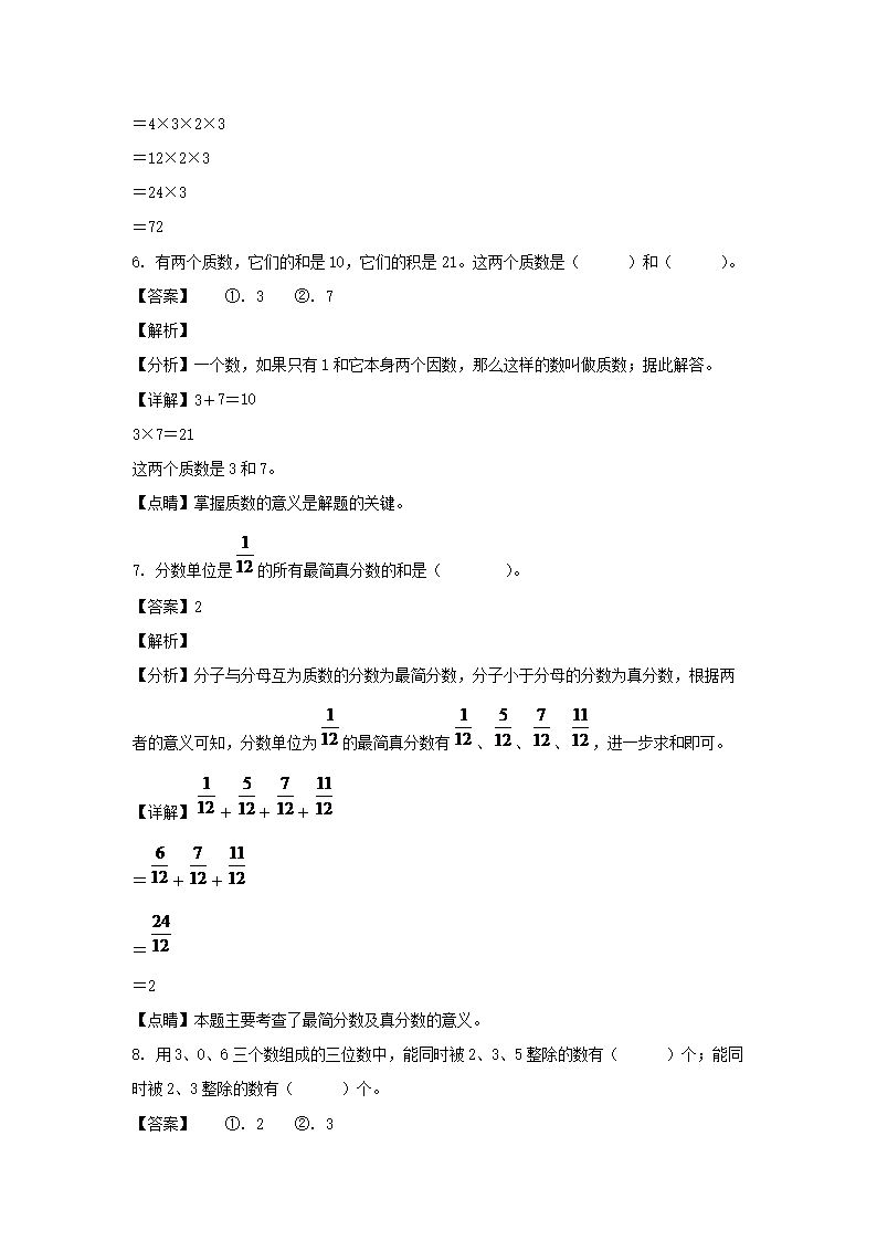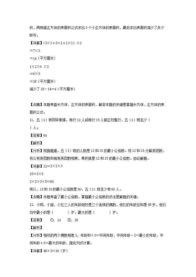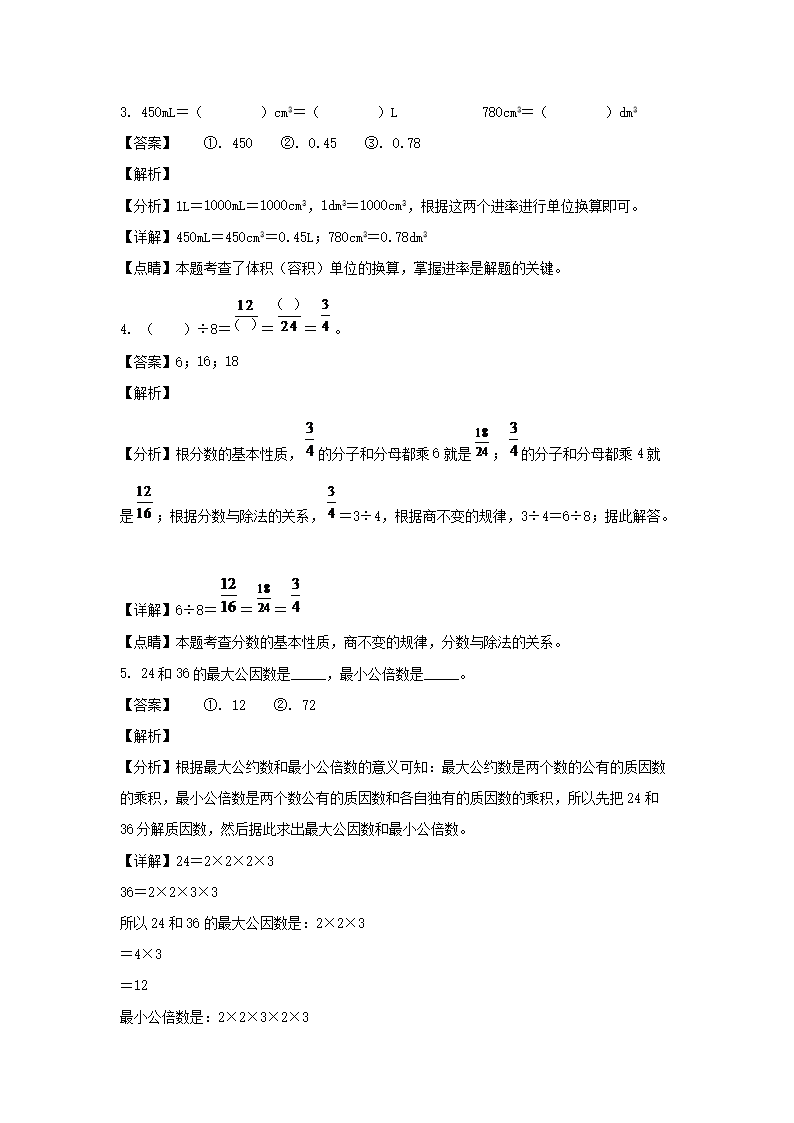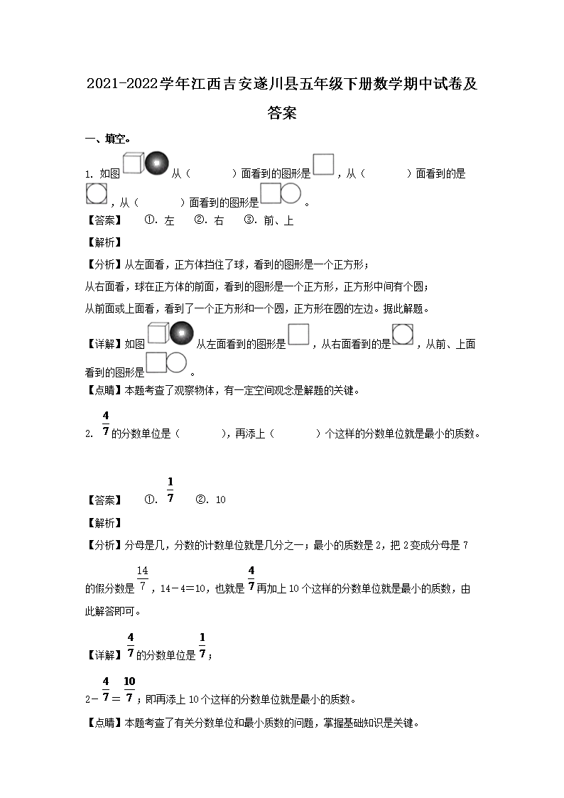 2021-2022学年江西吉安遂川县五年级下册数学期中试卷及答案(Word版)09-28