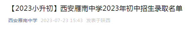 陕西西安雁南中学2023年初中招生录取名单公布07-25