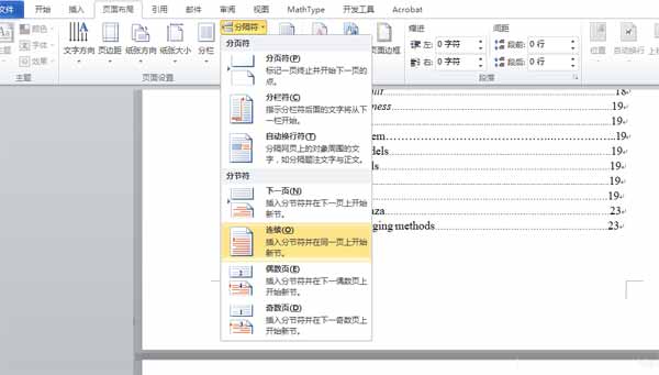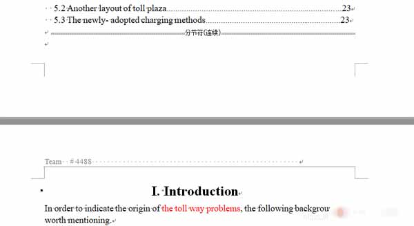 这里以目录后为正文为例,即在目录页末尾插入分节符: