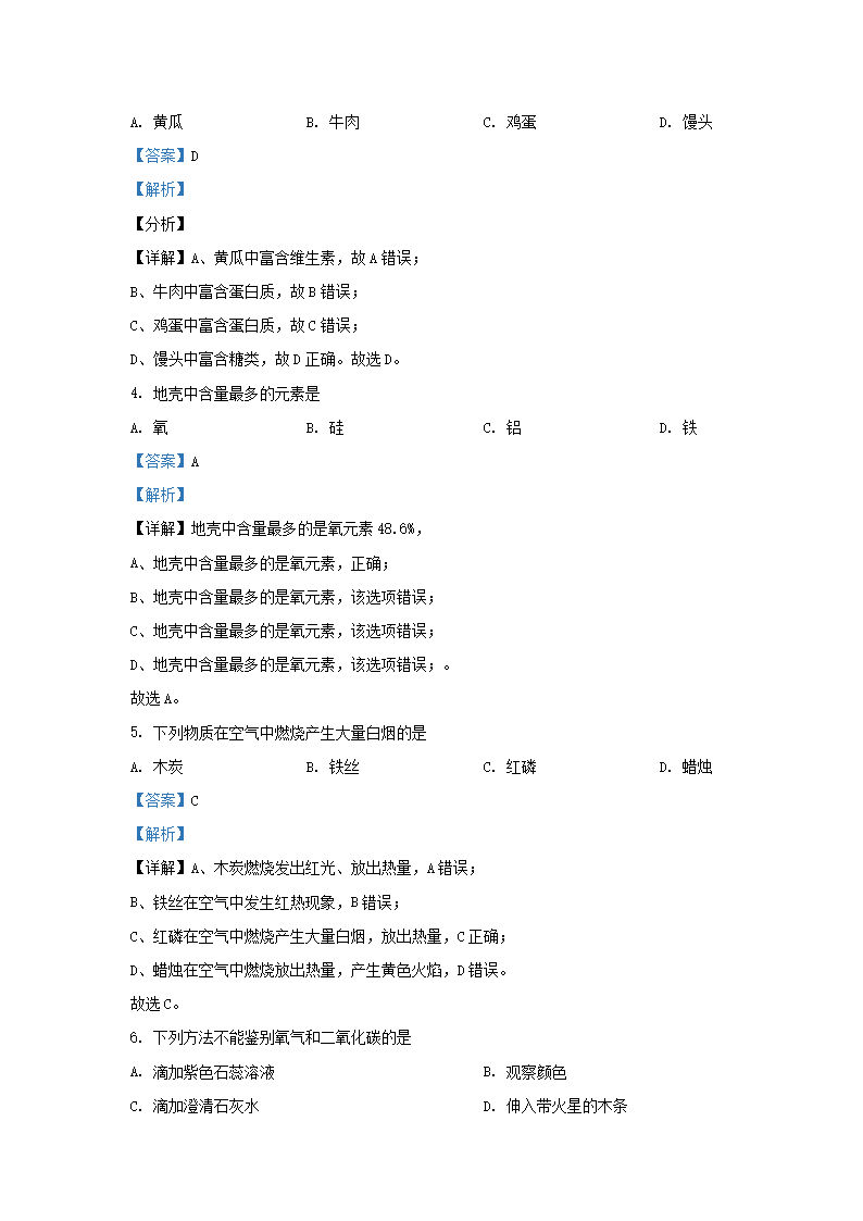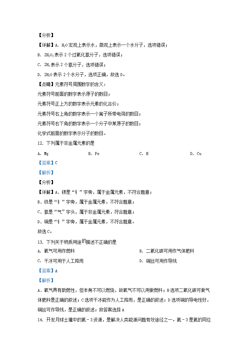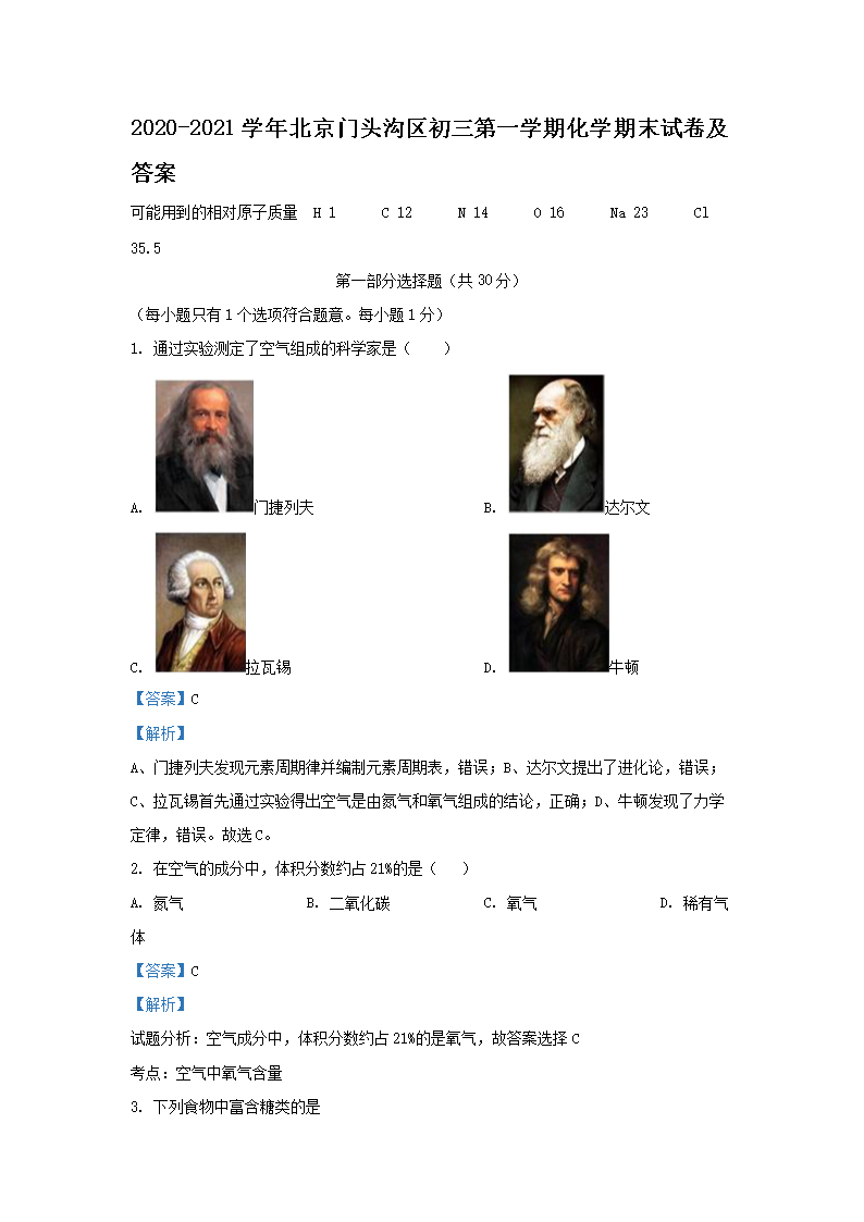 2020-2021学年北京门头沟区初三第一学期化学期末试卷及答案(Word版)07-22