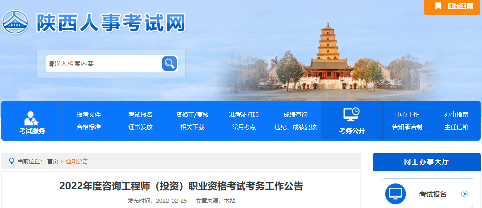 2022年陕西咨询工程师考试报名时间:2022年2月28日至3月7日17:00,报名工作采用网上报名的方式,报名网站“中国人事考试网(www.cpta.com.cn)”。
