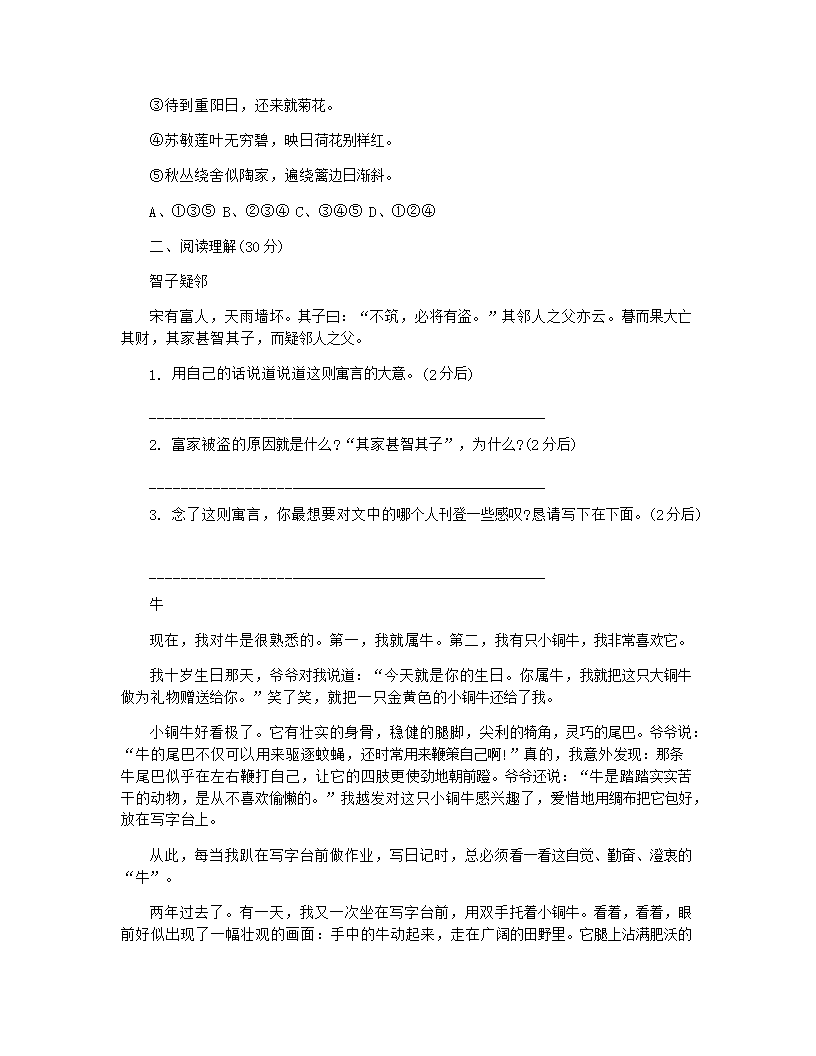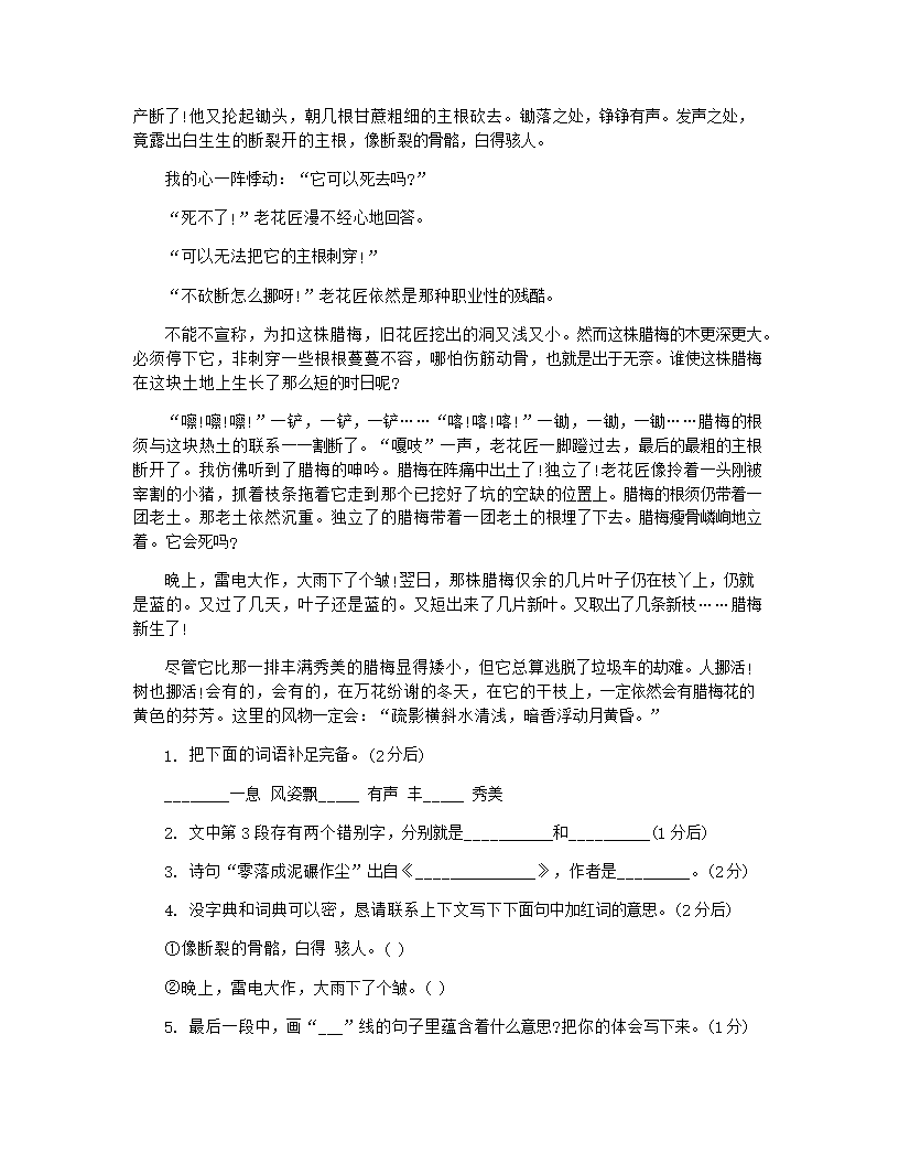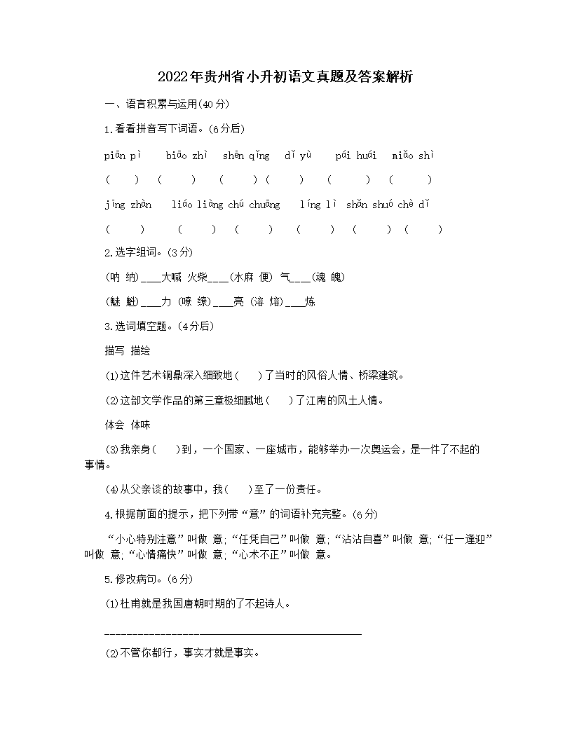 2022年贵州省小升初语文真题及答案解析(Word版)08-01