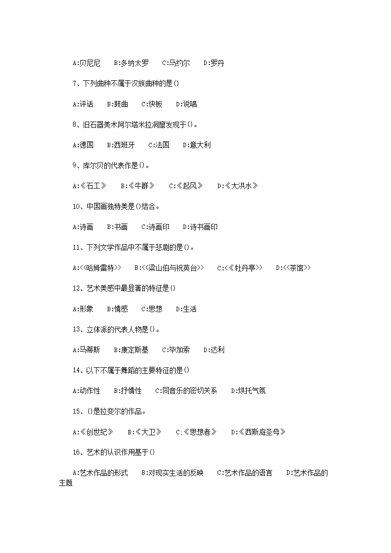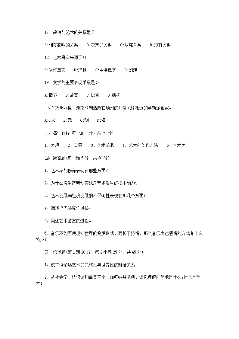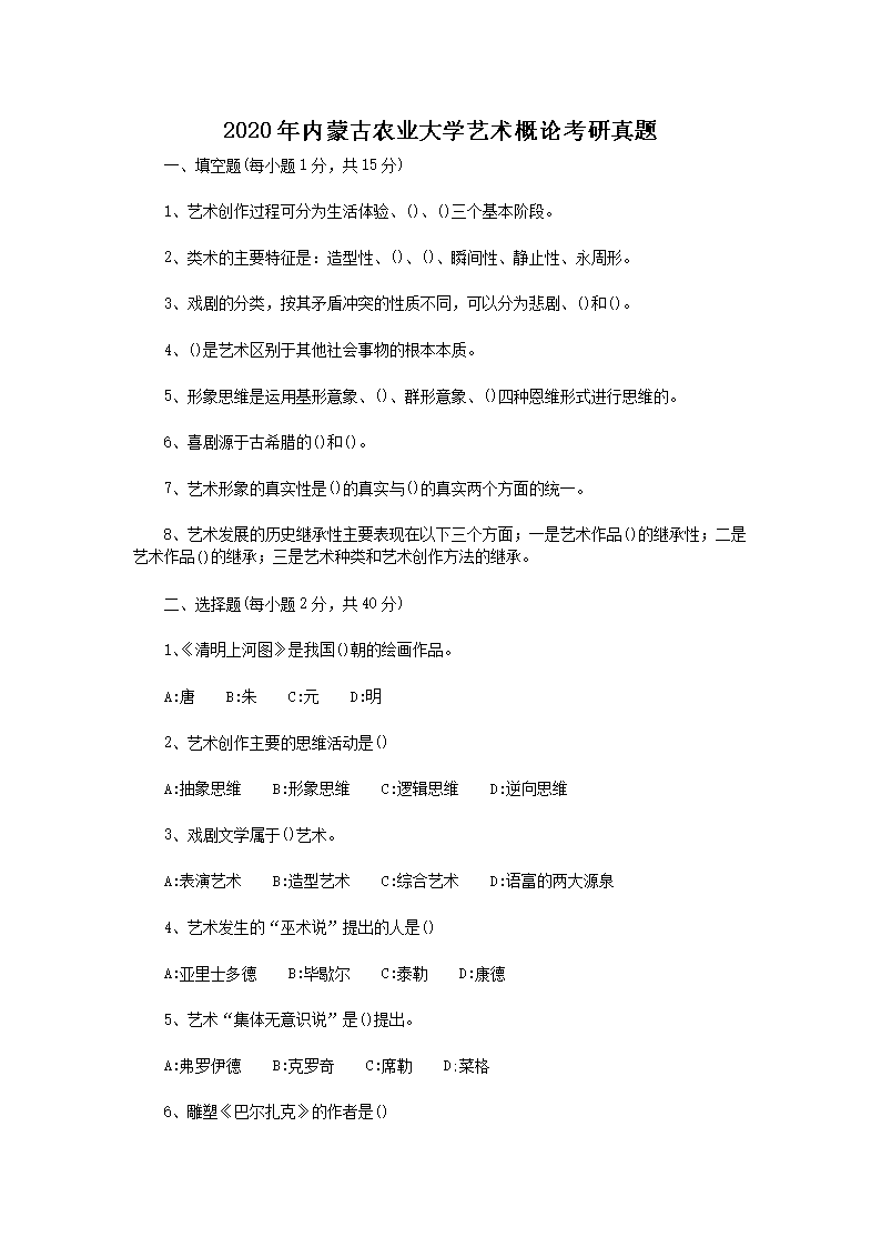 2020年内蒙古农业大学艺术概论考研真题(Word版)07-11