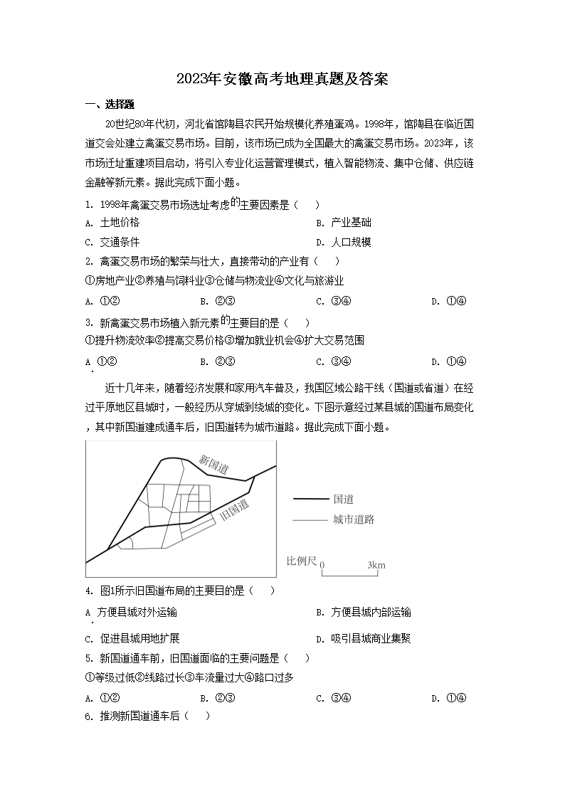 【文档预览】 文档大全网整理发布2023年安徽高考地理真题及答案(Word版),前五页预览如下: