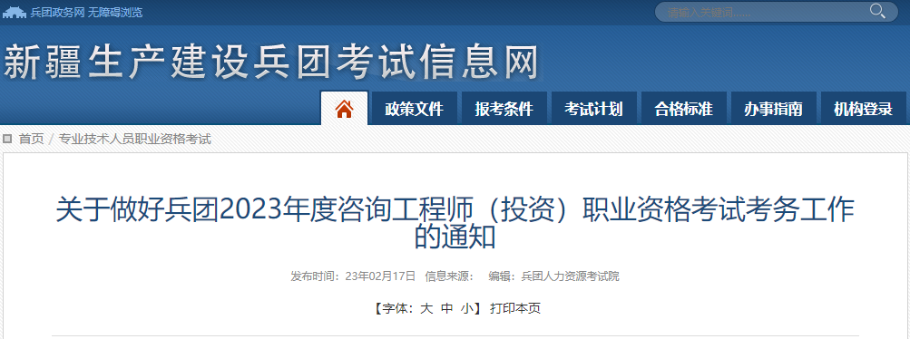 2023年新疆兵团咨询工程师(投资)职业资格考试报名通知02-22