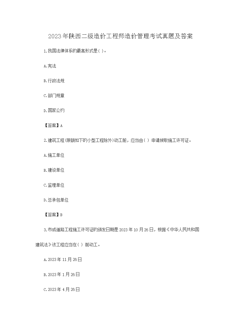 2023年陕西二级造价工程师造价管理考试真题及答案(Word版)09-29