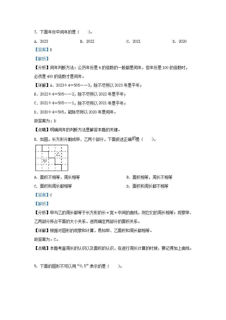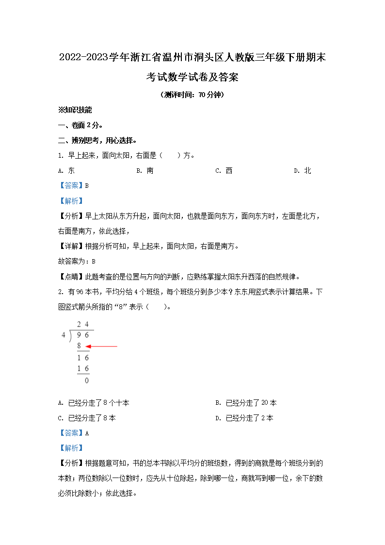 2022-2023学年浙江省温州市洞头区人教版三年级下册期末考试数学试卷及答案(Word版)09-01