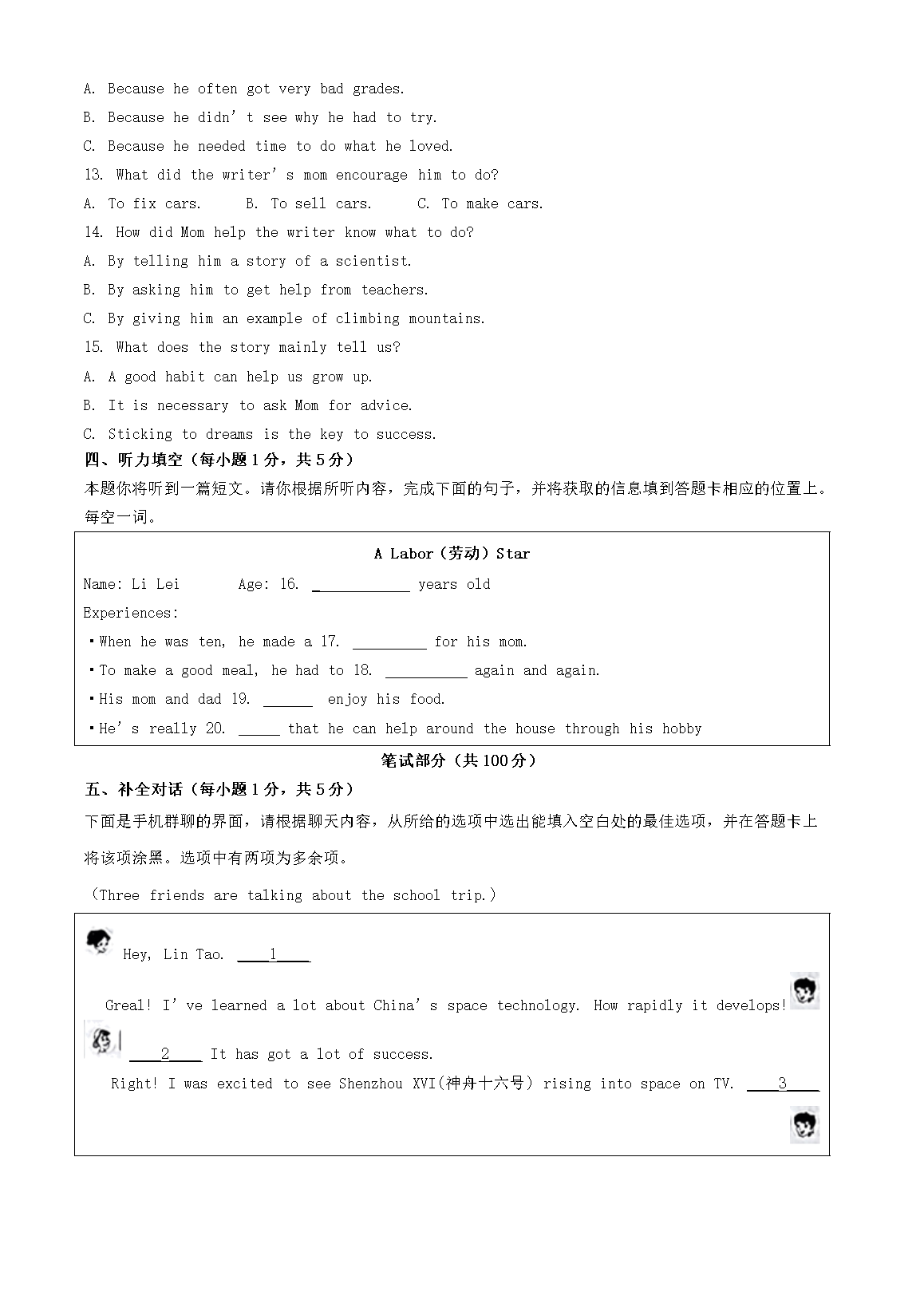 2023年山西晋中中考英语真题及答案(Word版)06-26